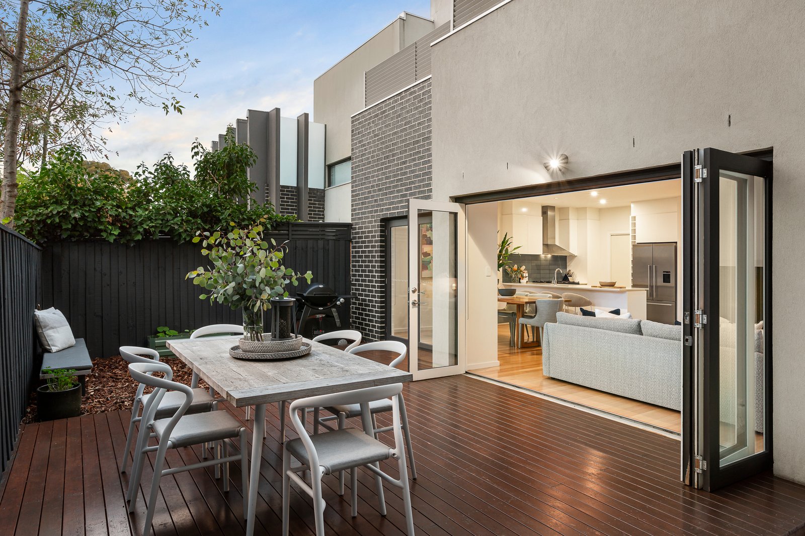 This contemporary town residence sets a modern first impression with its feature brick façade, and opens into a warm, cleverly designed floor plan split over three floors. On the ground floor, an open kitchen, dining and living area merges everyday routines with uncluttered convenience. Catering to the Masterchefs in your household, the smart kitchen is equipped with Caesarstone benchtops, a 120cm Falcon gourmet stove and adjacent walk-in pantry (and laundry for quick clean-ups). Plus, a spacious deck with green horizons to make indoor/outdoor entertaining extra lush.
