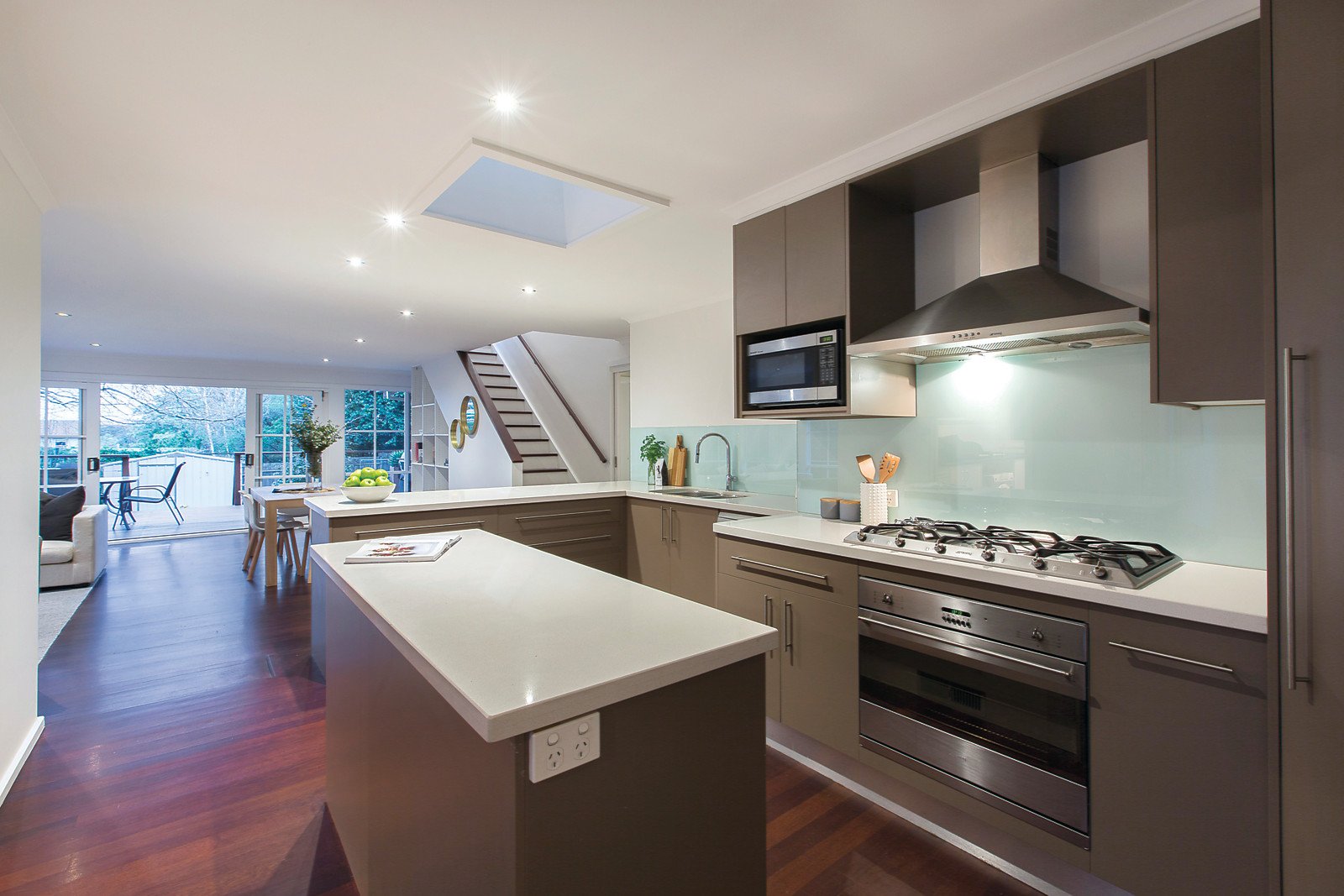 The interior features a neutral toned decor stylishly contrasting with dark stained floors, formal sitting and dining room with OFP, four zoned bedrooms, two with WIRs and ensuites, upstairs main with balcony & views, two at the rear with a family bathroom; plus a laundry and a stylishly appointed central kitchen with CaesarStone bench-tops, island bench, Smeg stainless steel stove and Bosch dishwasher flowing to an expansive family room and covered deck - ideal for year round indoor/outdoor relaxation and entertaining. Other features include ducted heating & cooling, garden shed, under house storage, rain water tank, carport plus tandem off-street parking.