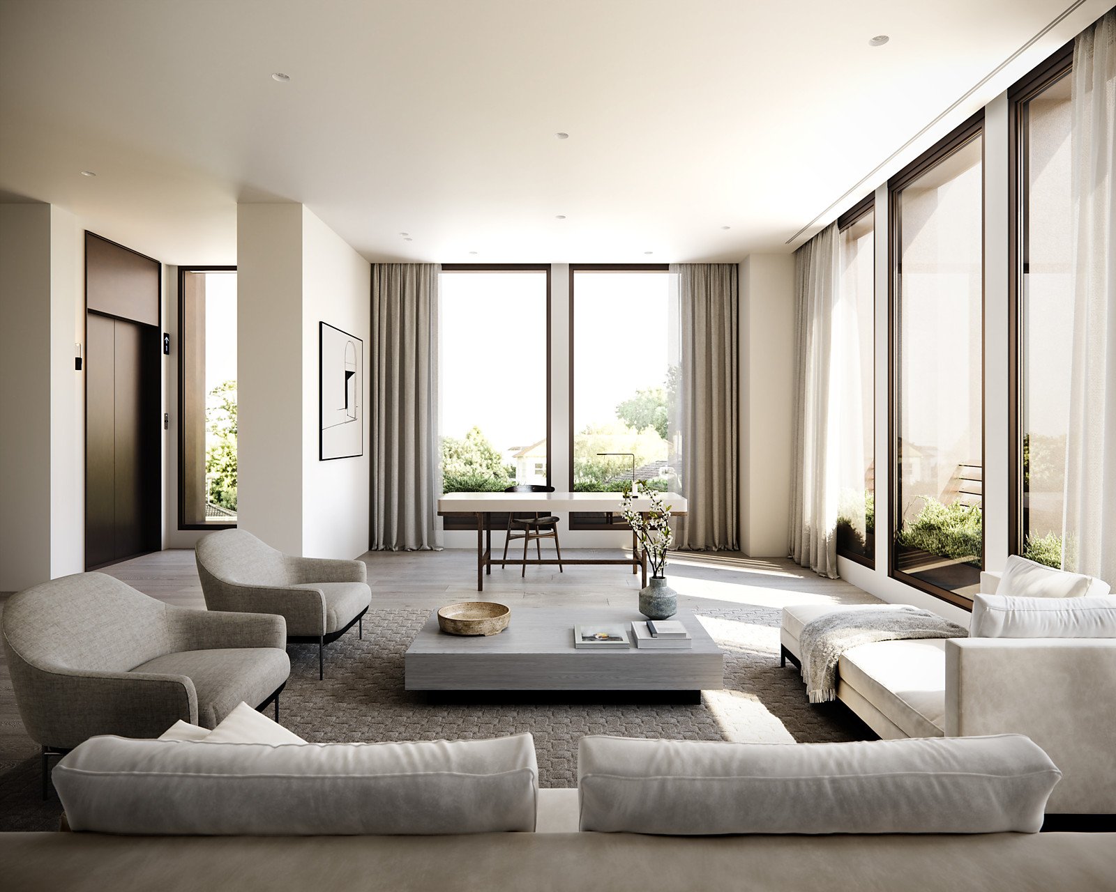 12 Huntingtower Road delivers all the sophistication of its premier surrounds. A boutique development designed by renowned architect Rob Mills and delivered by Davies Henderson, it comprises only two whole floor luxurious residences. With an elegant façade complementing one of Armadale's finest streets, this rare offering boasts modern, open-plan living, suited to relaxed entertaining. An incomparable level of finish includes beautiful Oak floors and an extensive use of imported marble. Residences consist of lift access, exquisite sitting room, refined study, gourmet kitchen, marble benches and exceedingly spacious living and dining room opening through sliding doors to a wide terrace. Opulent main bedroom with luxurious marble ensuite and walk in robes, matched by two further double bedrooms also with marble en-suites and built in robes. The basement level includes parking for 3 cars per residence, storage. Nestled amid the gentle pleasures of one of Melbourne's most sought-after suburbs, 12 Huntingtower Road enjoys the balance of city proximity and leafy seclusion that underpins Armadale's enduring prestige.