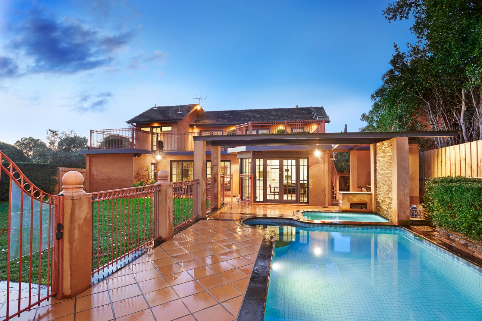 Proudly poised in Mont Albert's most sought-after precinct, generous 4 bedroom + study/3.5 bathroom proportions and magnificent resort-style grounds add significant allure to this Mediterranean-inspired family residence adorned with the right measures of formal and informal entertaining. Design-focussed gardens showcasing flood-lit North/South Mod-grass tennis court, sparkling fully tiled concrete swimming pool/spa and adjacent BBQ/lawn areas provide the perfect setting for grand-scale festive occasions and a lifetime of pleasures.