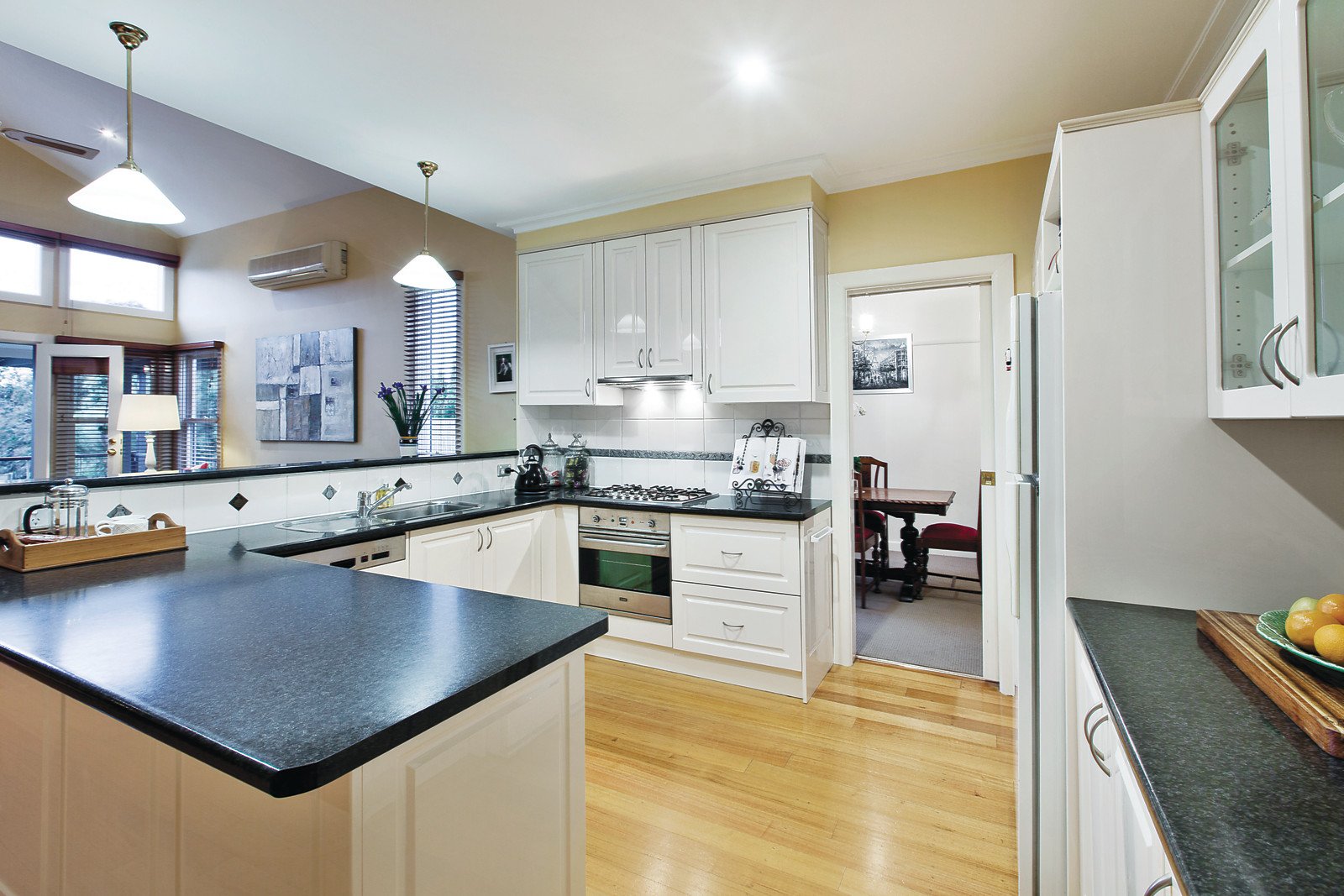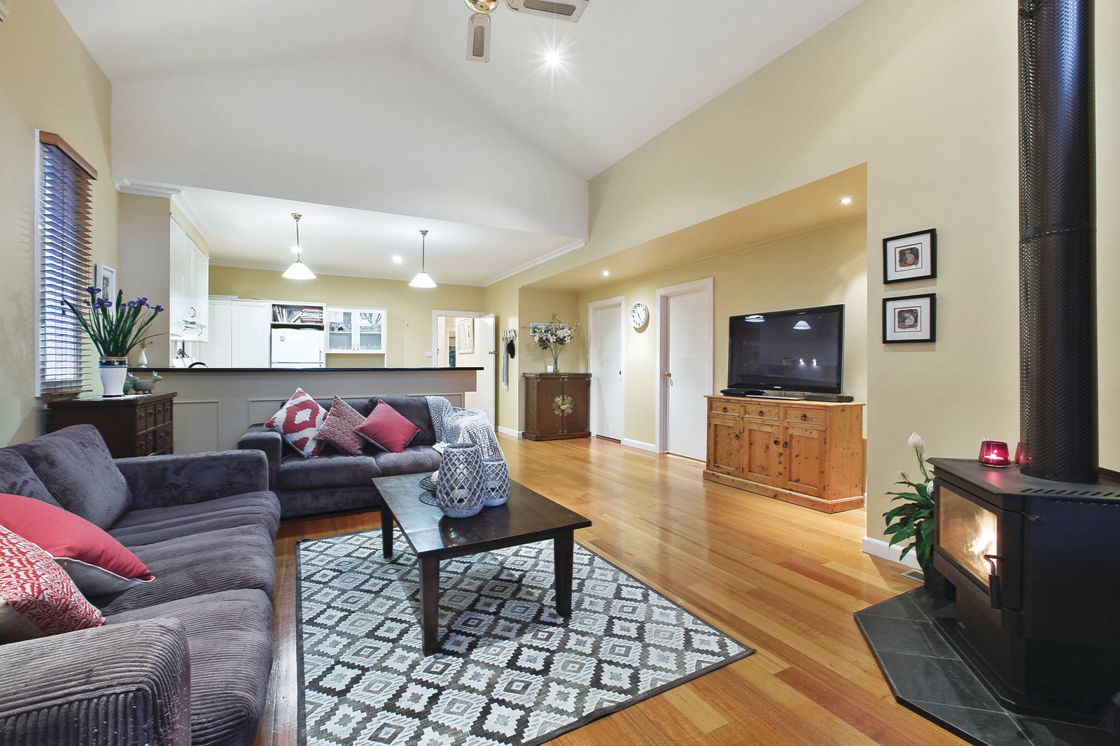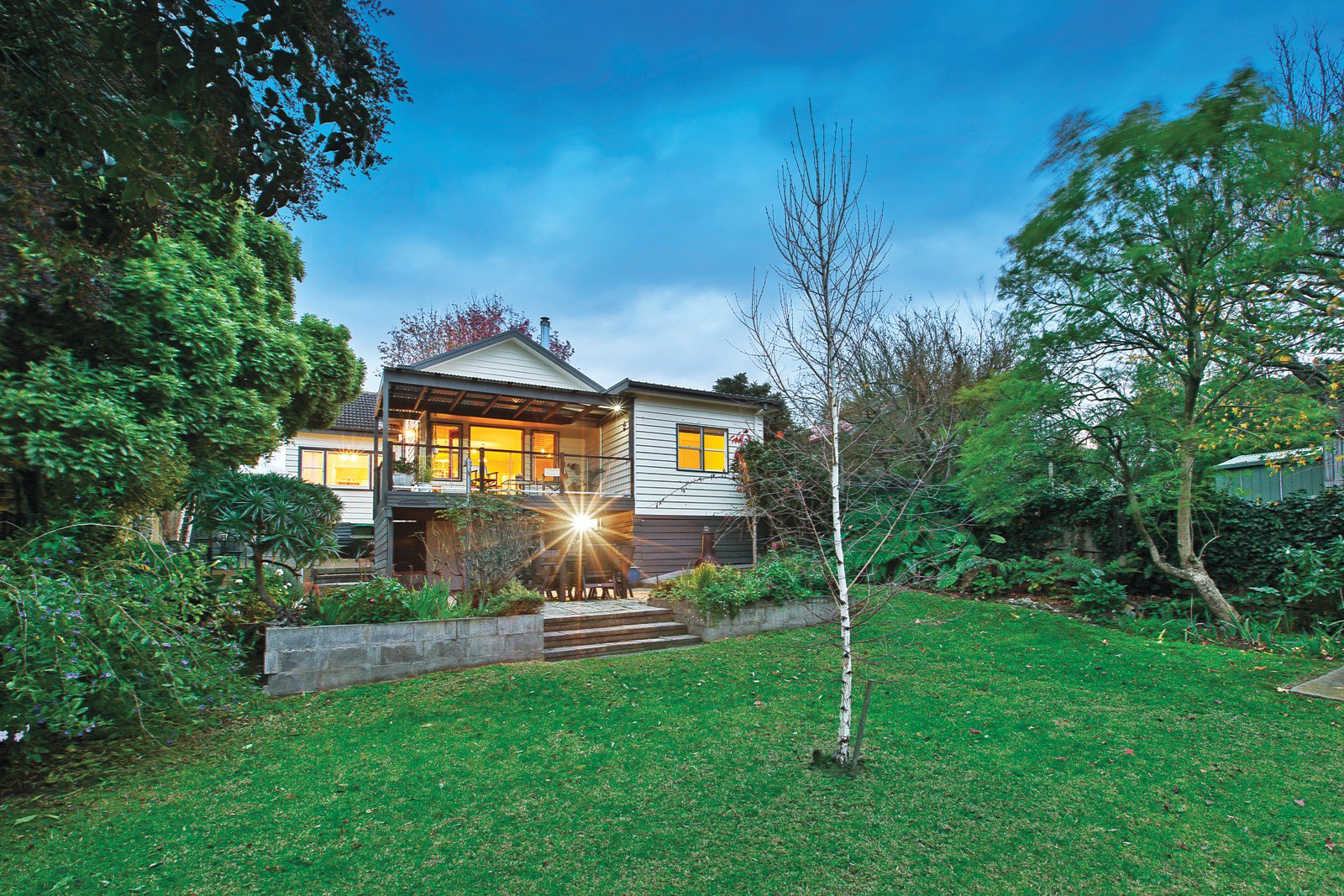 Nestled in a surrounding landscaped garden, renovated character proportions include multiple living and indoor/outdoor entertaining domains designed to provide fabulous family flexibility amid the stunning views. Elegant formal sitting with classical open fire and formal dining easily access a central open plan kitchen with Bosch/ILVE appliances overlooking fireside family spaces beneath a soaring vaulted ceiling. French doors step out to an elevated undercover deck ideal for drinks, dining or just enjoying the surrounding serenity, whilst a second outdoor zone beneath provides further entertaining versatility.
