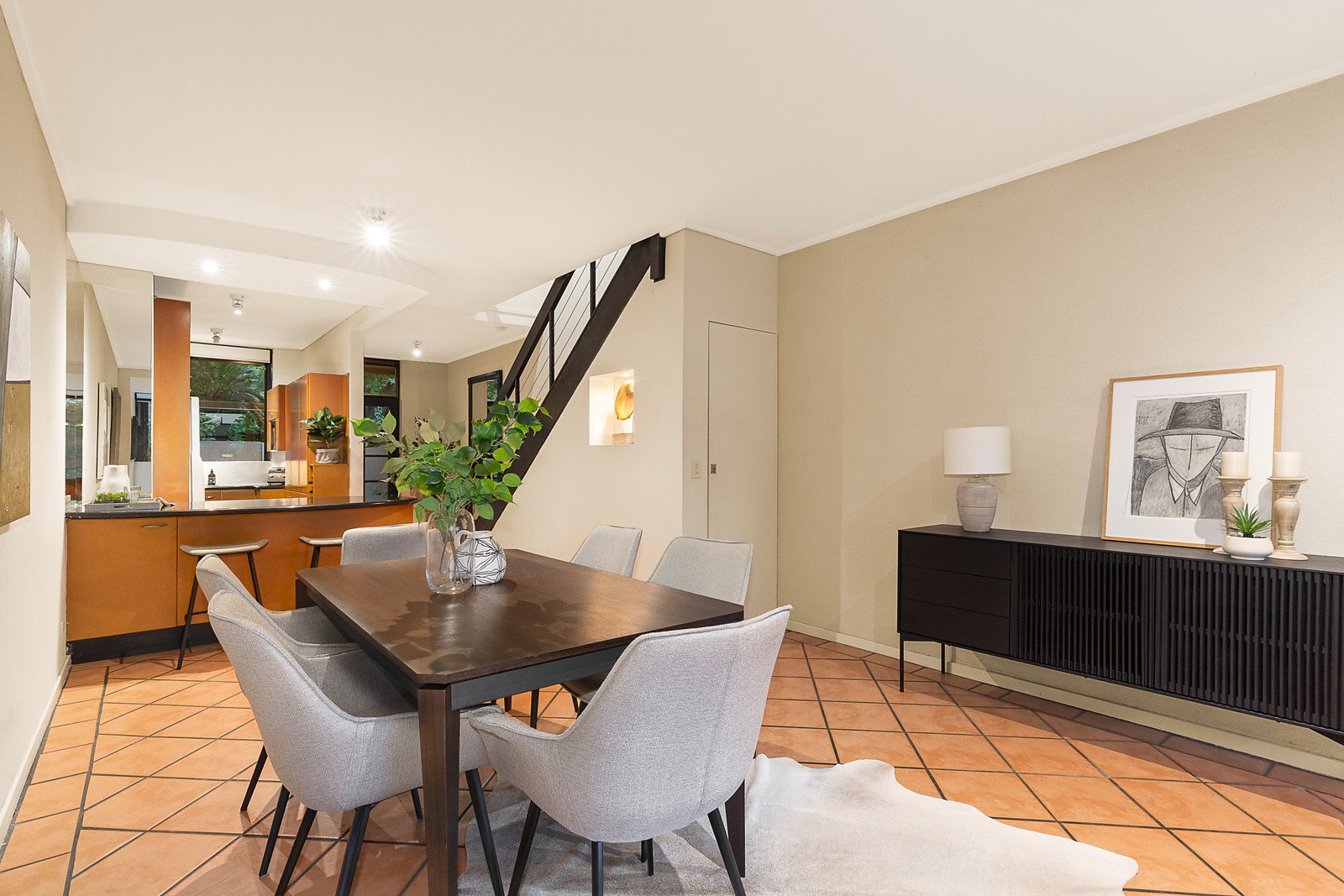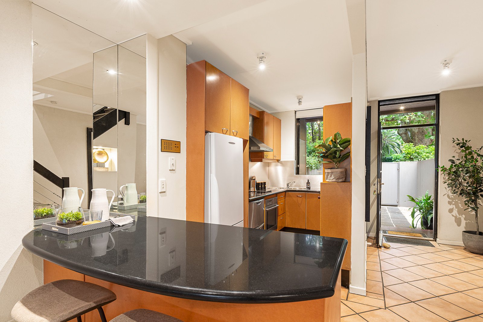 Behind a high walled garden shaded by the magnificent Plane trees that line Park St, the entrance hall introduces a light-filled and expansive open plan living and dining room served by a pristine modern granite kitchen. Black framed full width glass sliders open to the deep north-facing private courtyard with a large double garage and storage at the rear accessed via Park Lane. Upstairs, the spacious main bedroom with walk in robe and a second double bedroom with built in robe share a large sky-lit bathroom with separate toilet.