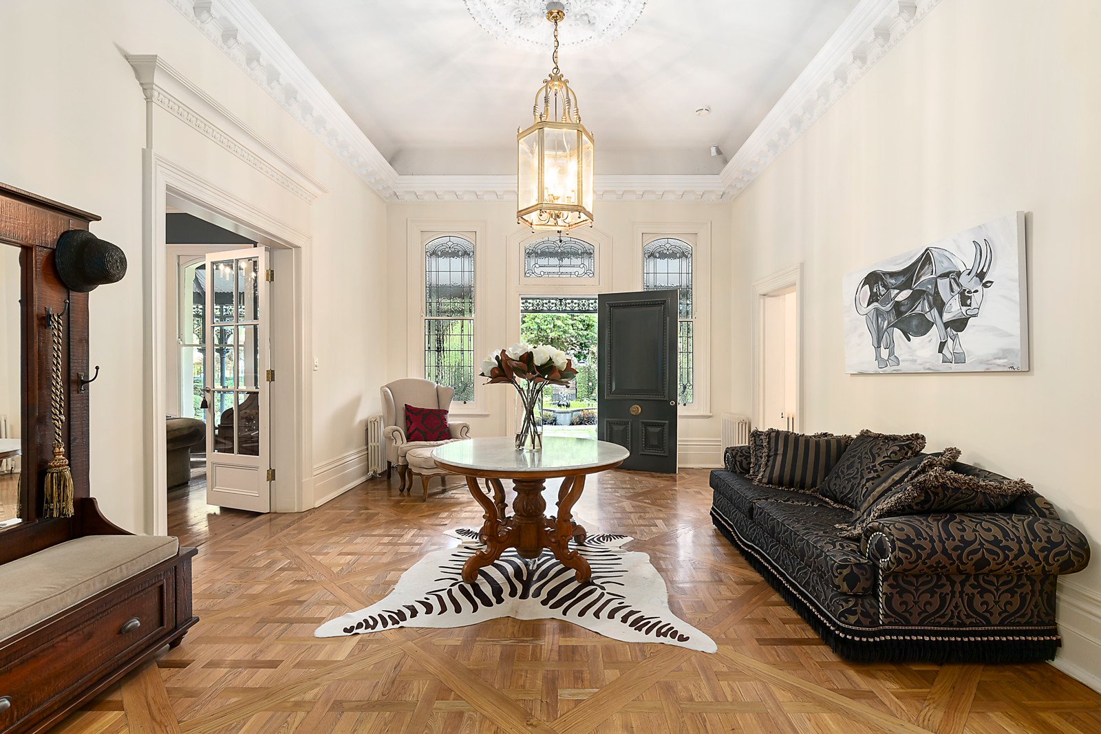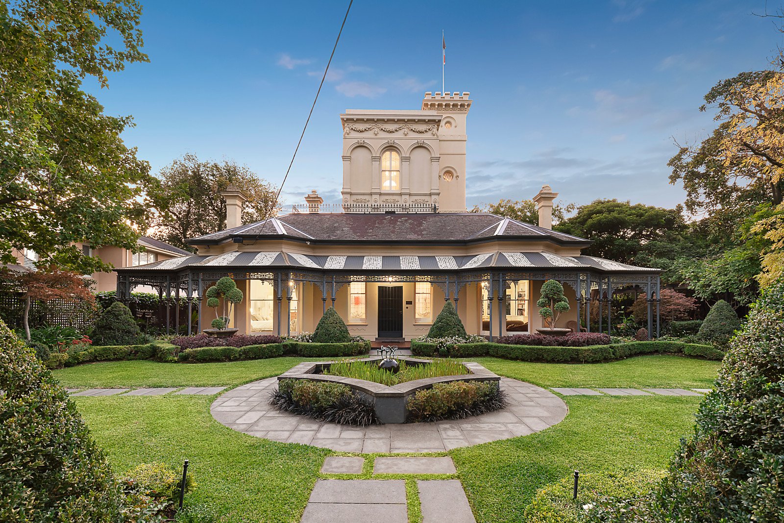 Superbly positioned in the coveted and prestigious Tara Estate this magnificent landmark Italianate slate roofed Victorian residence complete with an imposing tower is arguably one of the finest homes in the surrounding area. Showcasing the iconic grandeur of its era, it is set on a wide garden allotment with a water feature, mature trees and private spaces for outdoor relaxation, entertaining and family enjoyment. The residence emanates warmth and charm and is enhanced by an abundance of natural light and an impressive array of period attributes, including iron lacework verandah plus high ceilings with roses and ornate cornices.