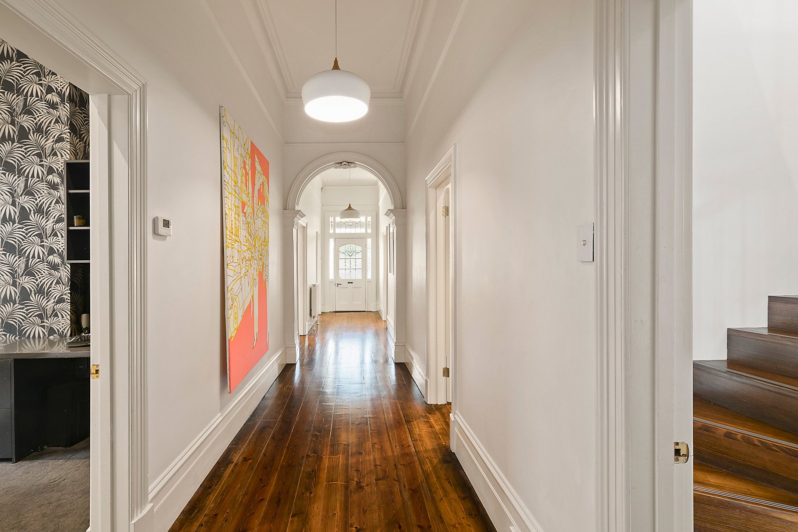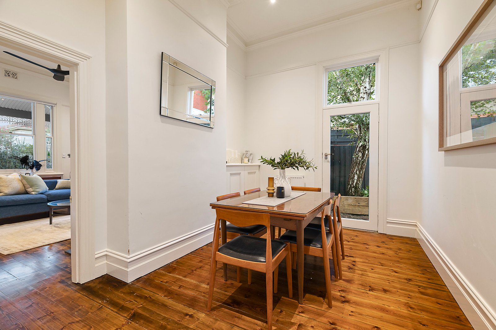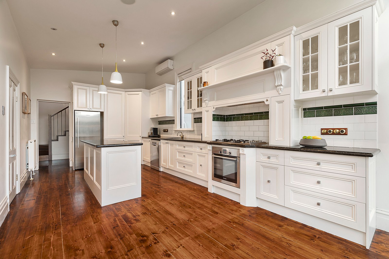Nestled behind a gorgeous landscaped edible garden, the wide arched entrance hall featuring high ceilings and dark stained Baltic pine floors flows through to a gracious sitting room with marble fireplace and a formal dining room. Bathed in northern light, the gourmet stone kitchen and casual dining area open to the deep private north-facing landscaped garden, picturesque solar/gas-heated pool with gas booster and a large entertaining deck. Versatile accommodation comprises three generous bedrooms with built in robes, a stylish bathroom and upstairs parents retreat comprising the main bedroom with chic en suite, walk in robe and study nook. There is also a spacious living room or 5th bedroom on the ground level opening to the garden.
