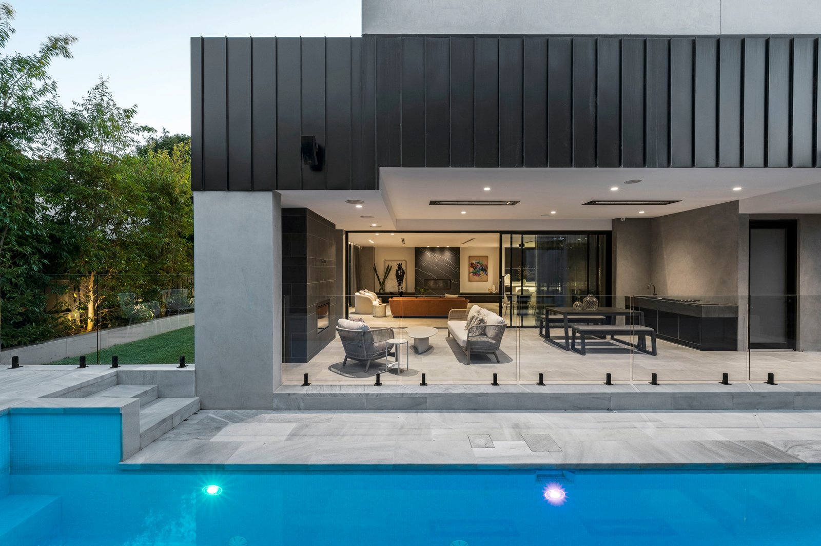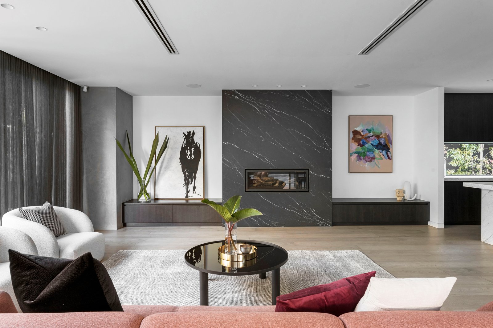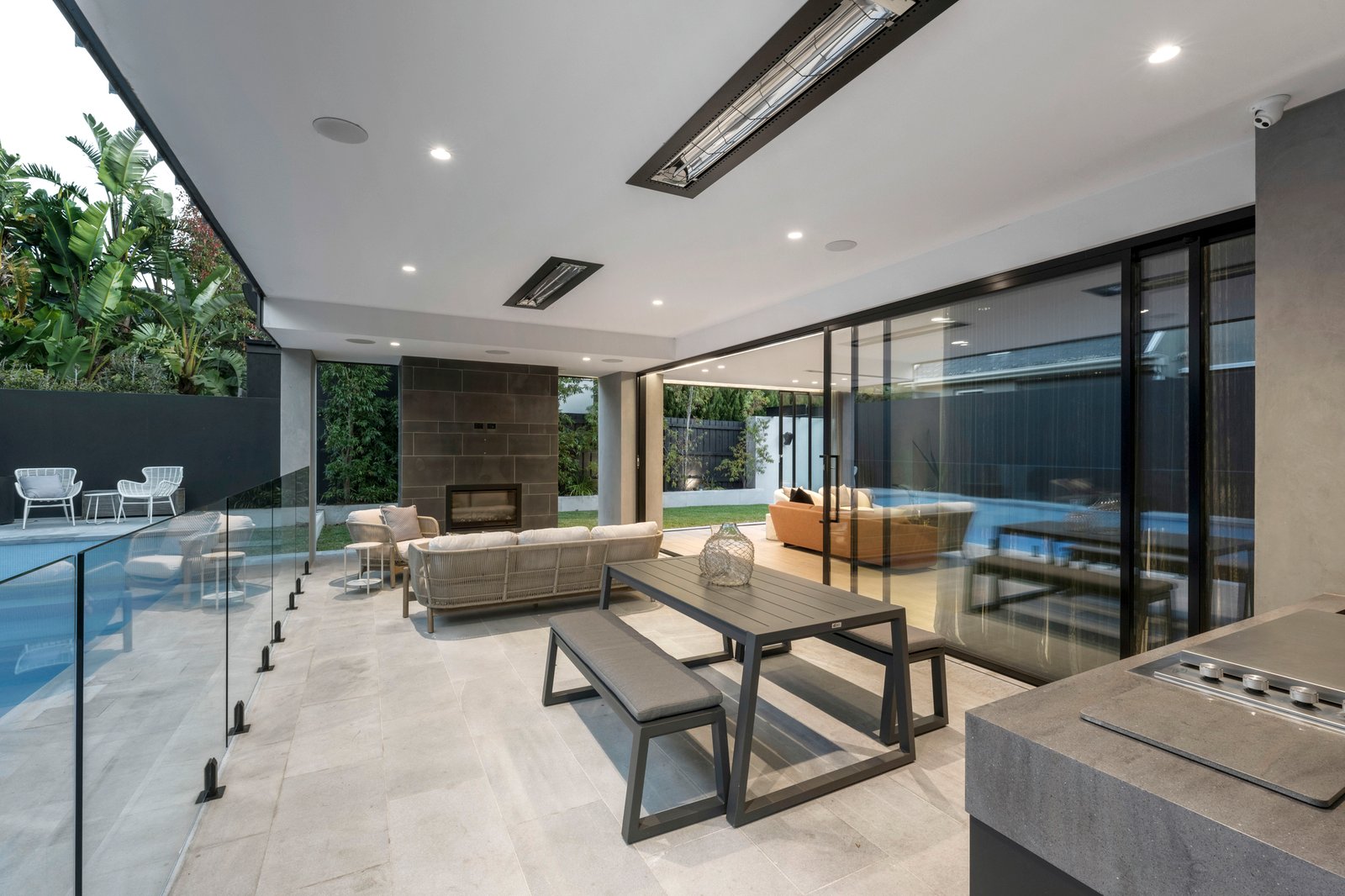 Functionality is integral to every room, with ducted and zoned air conditioning, in-floor heating, and bathrooms that match hardwearing surfaces with luxury inclusions. Dine outdoors in the heated barbecue zone, gather around the firepit where there’s integrated seating, and admire the no-expense-spared quality of this iconic home crafted by Dwell &Co.