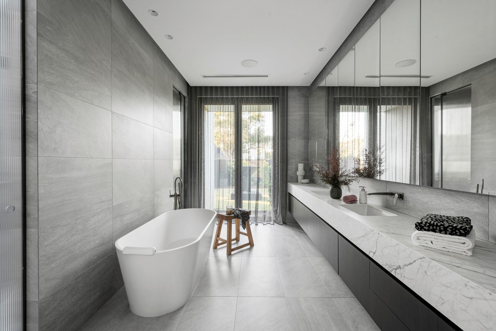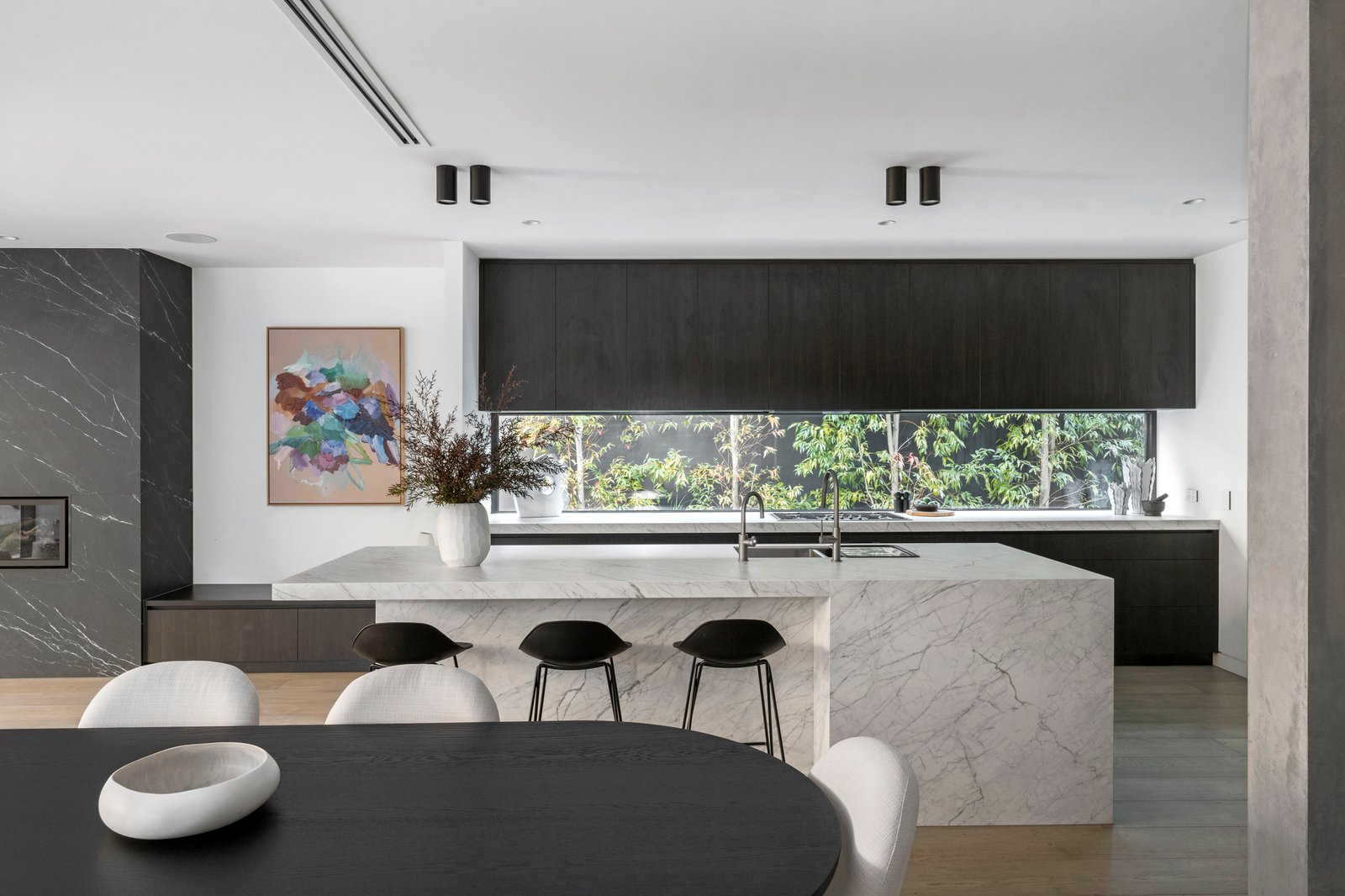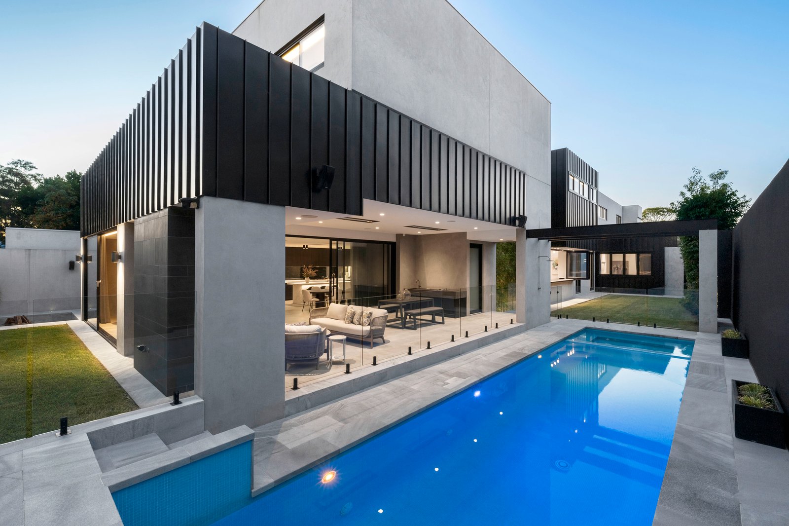 Functionality is integral to every room, with ducted and zoned air conditioning, in-floor heating, and bathrooms that match hardwearing surfaces with luxury inclusions. Dine outdoors in the heated barbecue zone, gather around the firepit where there’s integrated seating, and admire the no-expense-spared quality of this iconic home crafted by Dwell &Co.