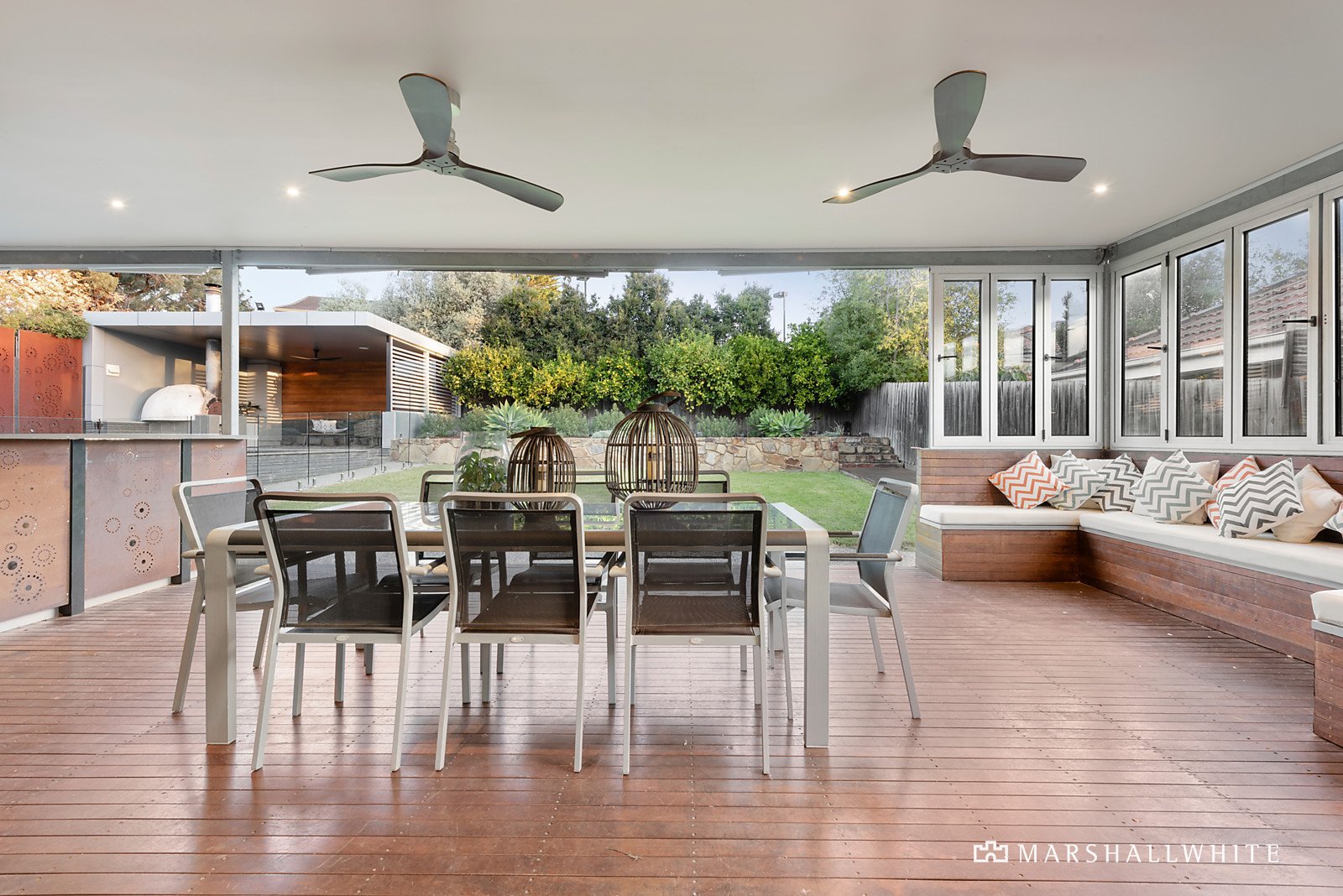 High ceilings accentuate the sense of space while rich timber floors add warmth to the broad central hall, generous home office with filing room, an inviting sitting room and beautiful dining room. The state of the art gourmet kitchen boasting stone benches, 120cm Ilve oven and butler's pantry and the expansive living room with a gas log fire open to the glorious private garden with large covered deck, stunning heated pool and a cabana/pool-house with wood fire pizza oven. It's an idyllic setting for year-round outdoor entertaining. The opulent main bedroom with deluxe walk in robe, designer en suite and north-facing balcony is complemented by three additional double bedrooms with robes and a stylish bathroom. A magnificent entertainment zone downstairs comprises a huge rumpus/billiards room with kitchenette, fully fitted home theatre, dedicated gym, fitted study, wine cellar, powder-room and 3-car garage. There is also an extensive storage area.