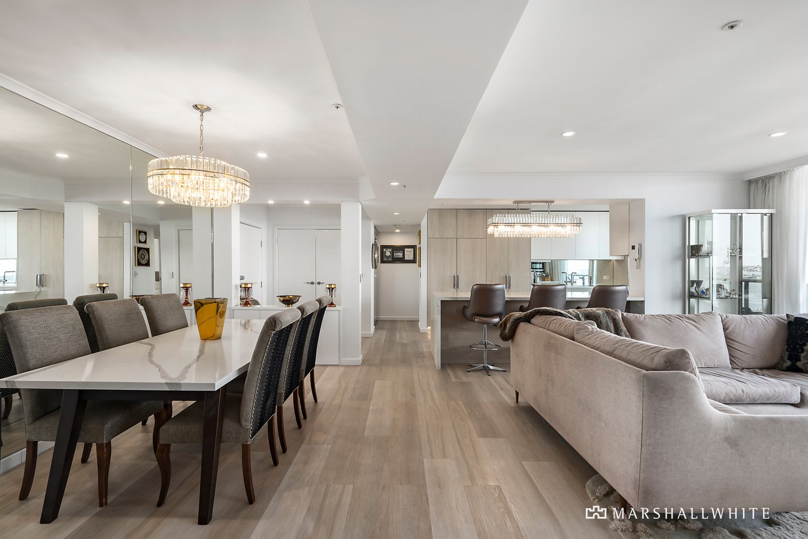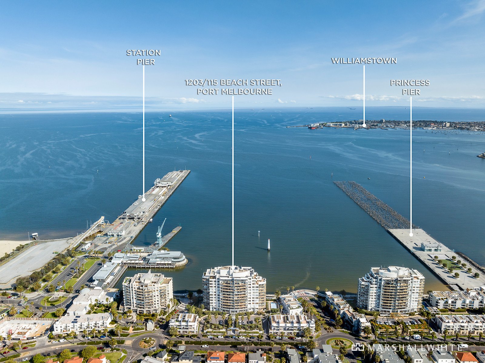 Residents have use of the outdoor pool and on-site concierge, whilst the convenience and comfort of zoned ducted heating/cooling, abundant storage, lavish marble bathrooms and powder room, a full laundry, two secure car spaces and a large storage cage add undeniable appeal. Enjoy direct access to running tracks, cycling paths and the beach, and relish the proximity to the vibrant Station Pier precinct, home to various cafes, bars, and restaurants, with the city-bound light rail just moments away.
