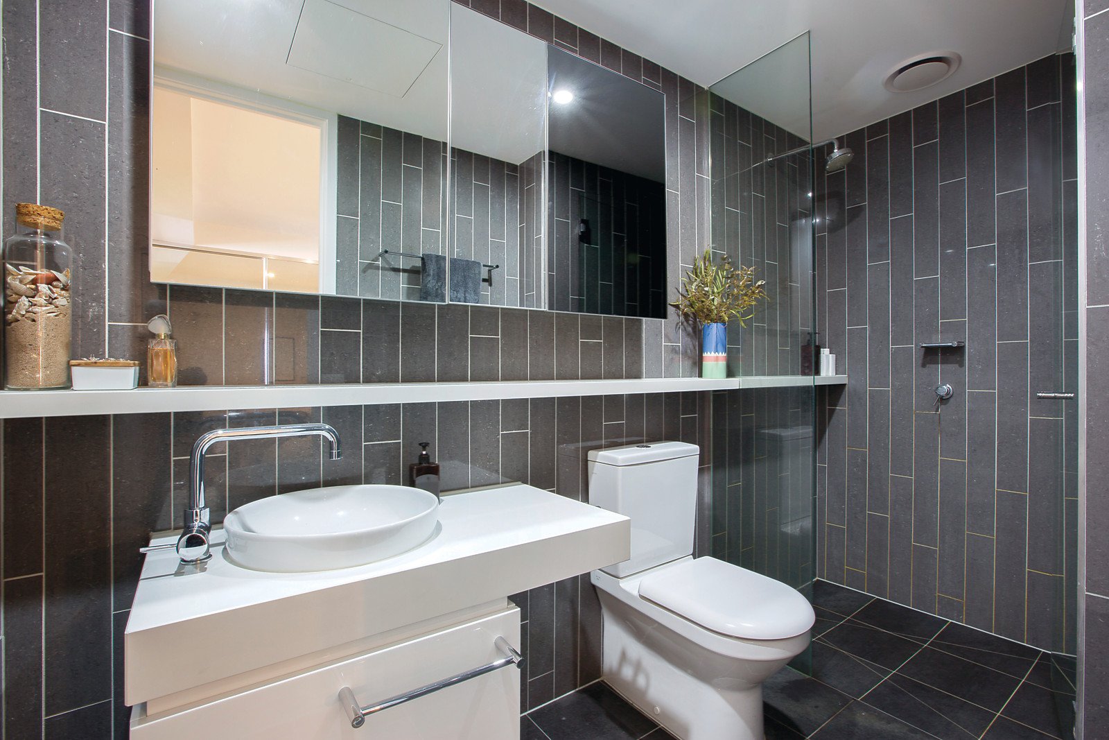 Stone benches, premium appliances and a beautiful mirrored splashback set the highly sought-after scene for an open-plan kitchen/dining/lounge that flows out to a stunning balcony all with amazing views of Port Phillip Bay, the Westgate Bridge and You Yang Ranges. With huge mirrored robes and ensuite access to a superb designer bathroom, the bedroom blends a sense of luxury with supreme convenience.