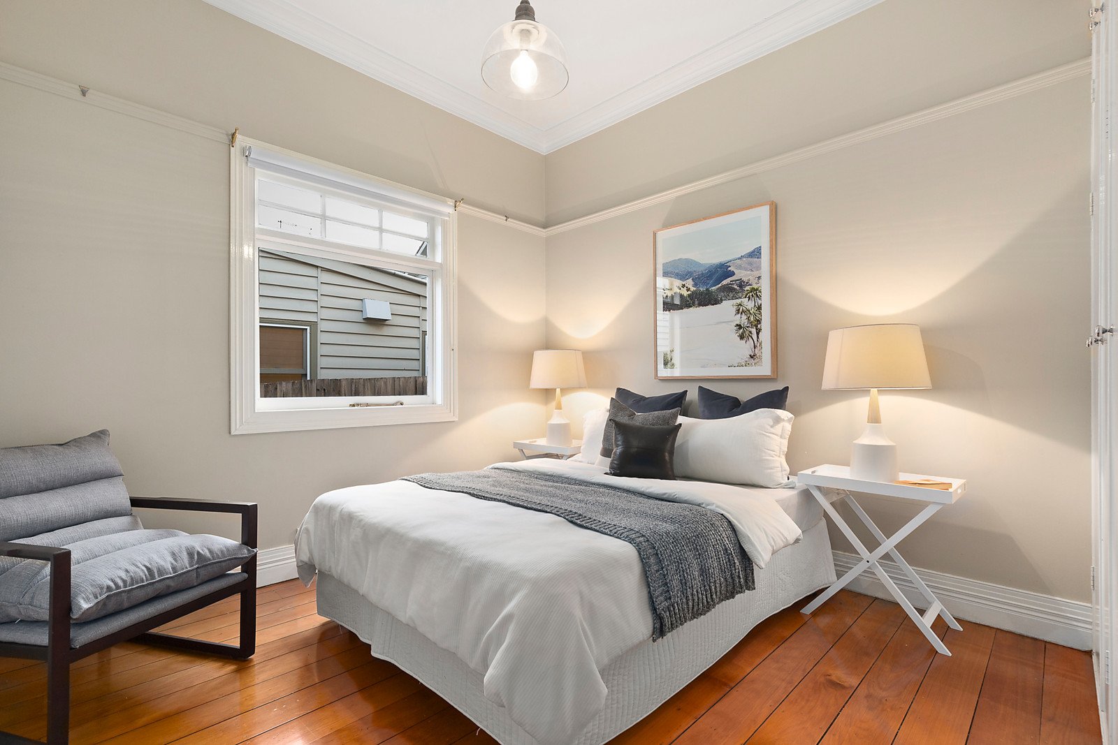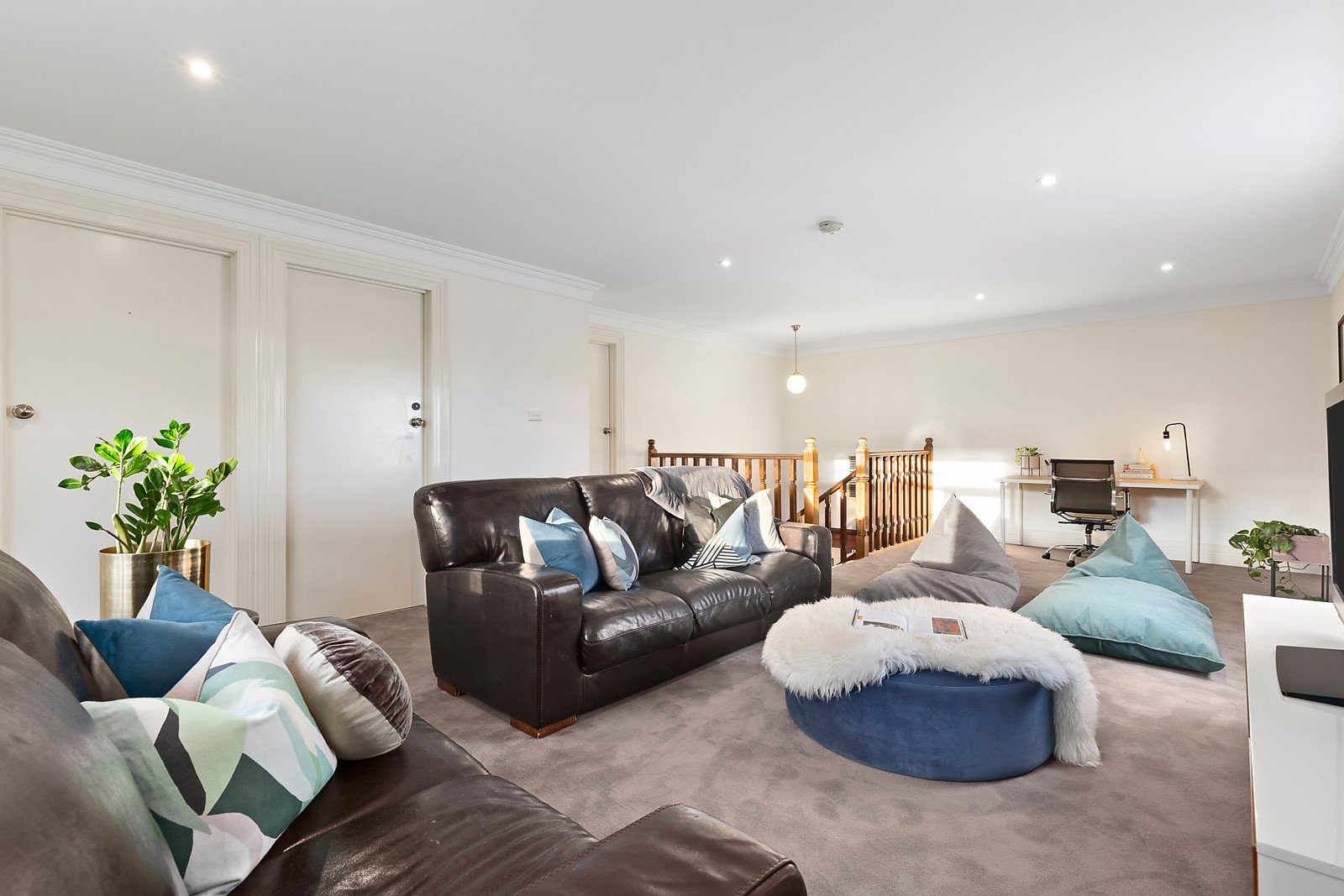 The classic charm of Baltic pine floors and high ceilings defines the wide central hallway and very generous formal room warmed by an open fire. At the heart of the home, a stunning gourmet kitchen appointed with over-sized stone benches and Smeg appliances and an inviting living/dining room open to a large covered al fresco terrace with BBQ kitchen and the deep private garden with cubby and work-shop. An abundance of flexible accommodation comprises five bedrooms and a family bathroom with spa-bath, a spacious retreat and second bathroom upstairs. All bedrooms include built in robes.
