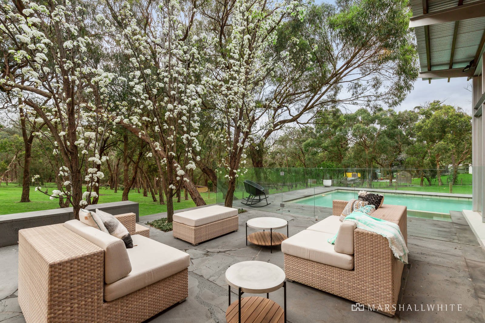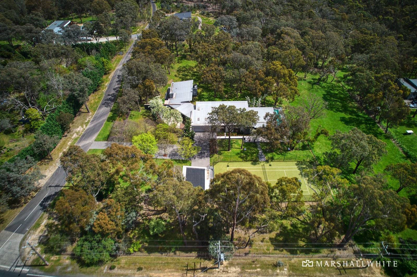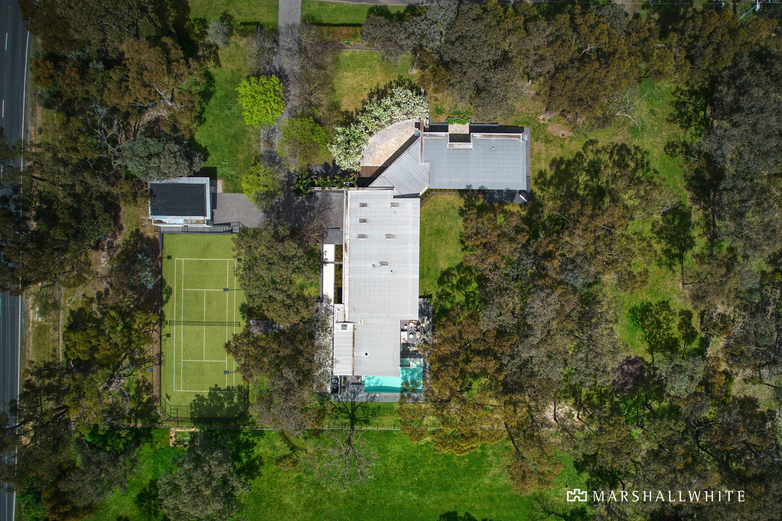 A landmark, architect-designed masterpiece, this sprawling five-bedroom residence brilliantly merges Jack Merlo-designed gardens, poolside alfresco living and a tennis court, all against the backdrop of lightly scattered trees. Incredible floor-to-ceiling windows create an indoor-outdoor connection most can only dream about in this remarkable, state-of-the-art home situated on two flat acres (approx.) where you can watch kangaroos gather by your back fence.