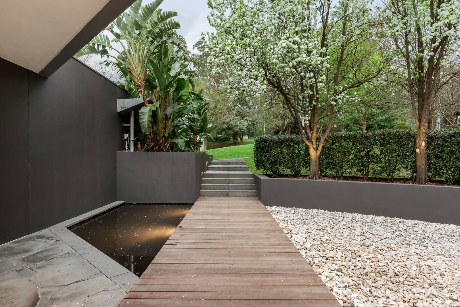 Intelligently designed to create zones for children and adults to gather and to be apart, there is also a rumpus room at one end of the home and a games room with a built-in bar and bathroom at the other. A pair of oversized garages can comfortably house six cars or one can be used as a gymnasium or studio/workshop, if preferred.