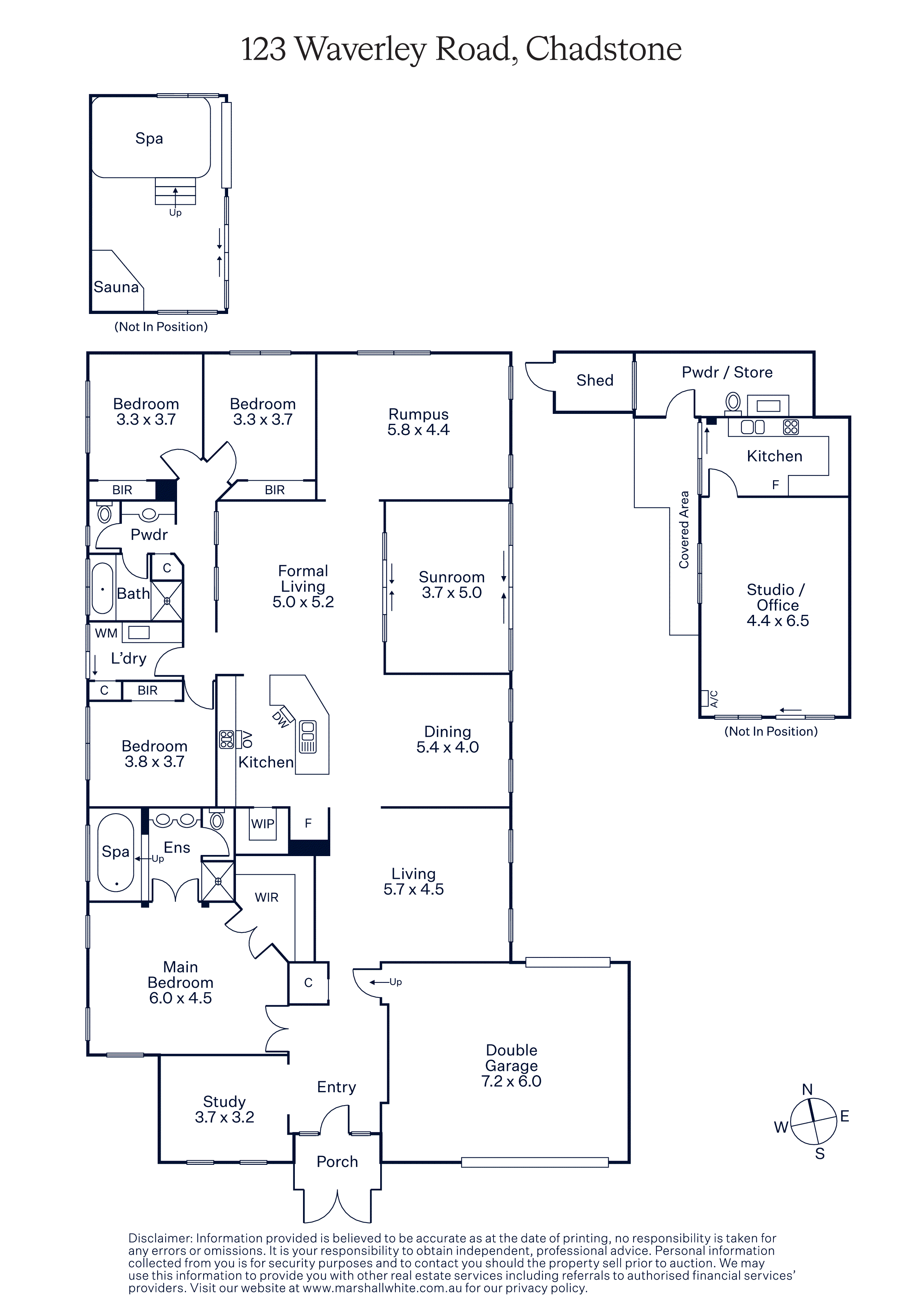 The impressive floorplan accented by timber floors and high ceilings provides the flexibility required by modern families. The wide entrance flows through to a study, formal living room, generous family living and dining rooms and a rumpus/media room all surrounding a superbly equipped gourmet kitchen. The living opens to an al fresco dining/entertaining terrace which connects to the private north-facing garden with a sauna/spa room and versatile self-contained studio apartment or recreation room with kitchen and powder-room. The beautiful main bedroom with opulent en suite and walk in robe is serenely set apart from three additional robed bedrooms and a bathroom with separate powder-room.