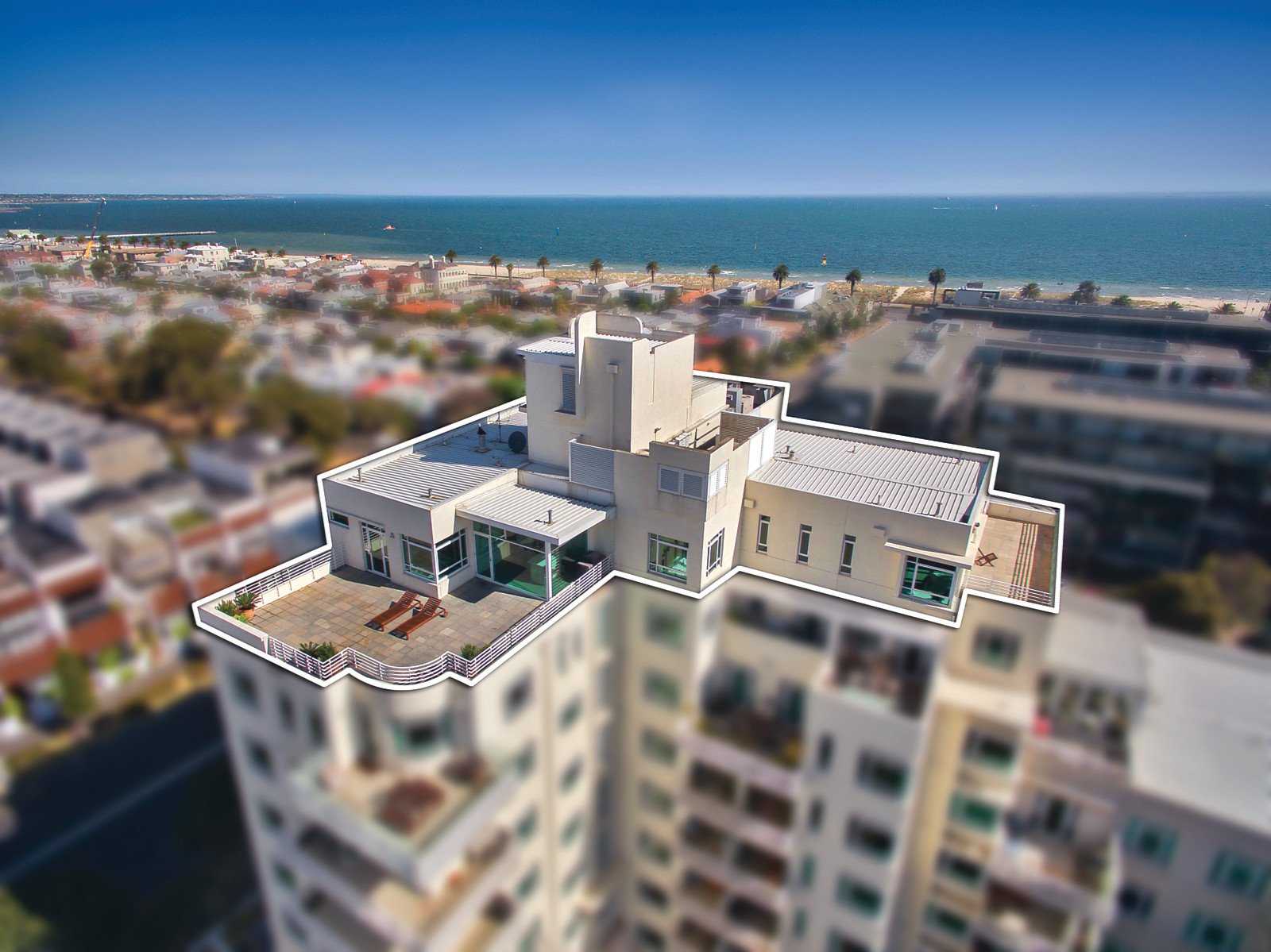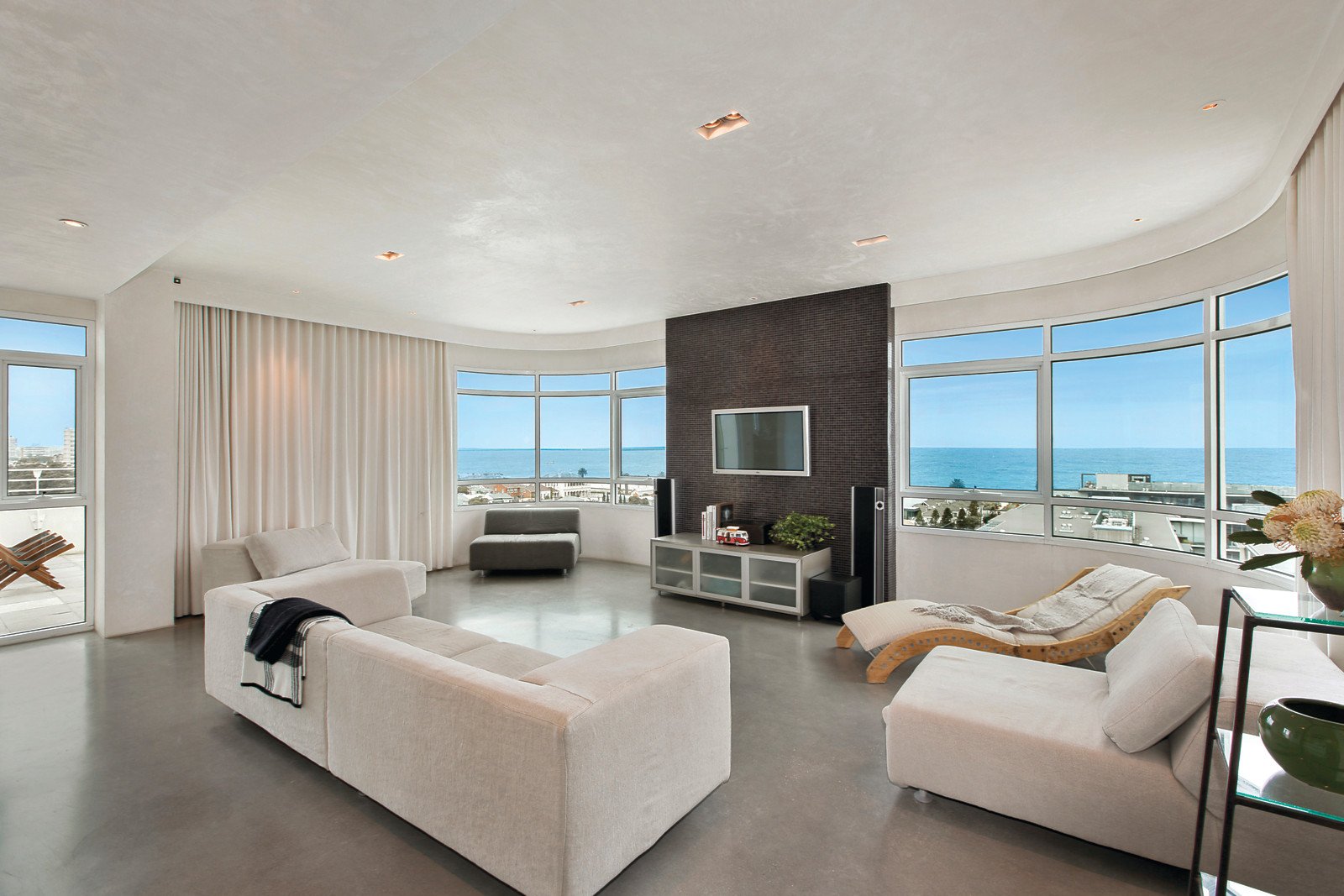 Commanding panoramic 360 degree views that encompass everything from the bay to the city, this spectacular penthouse's breathtaking indoor and outdoor dimensions exude unforgettable and innovative designer style. Defined by "warehouse chic", the inspired interior spaces display a palette of polished concrete, hard plaster, dark timber and opaque glass walls. The result is a wonderfully warm, inviting and luxuriously spacious domain that caters equally well to lavish entertaining and relaxed family living.