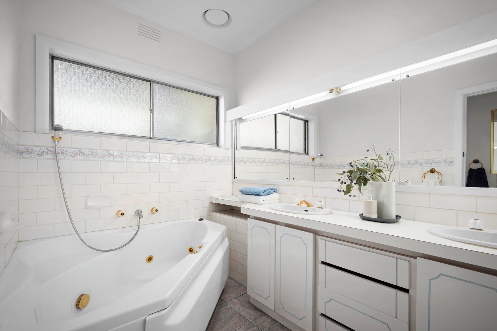 Freshly painted and with quality carpets, the character-filled home presents spacious and comfortable family living for now, with the potential for renovation, or redevelopment (STCA). An elevated crazy-paved entry patio introduces the classic style elements of the solidly built home, further enhanced with opaque patterned glass entry door surrounds, matched inside by sliding doors to the spacious and light-filled main living areas with wide archways and decorative cornices enhancing the high ceilings. Overlooking the backyard and rear alfresco patio, the central kitchen has a huge amount of cupboard space and is well-equipped with Whirlpool double ovens and gas cooktop, and a Westinghouse dishwasher. The four bedrooms are all a decent size and have built-in robes, while the main bathroom has a two-person corner spa bath, and there is a separate shower room, and powder room.
