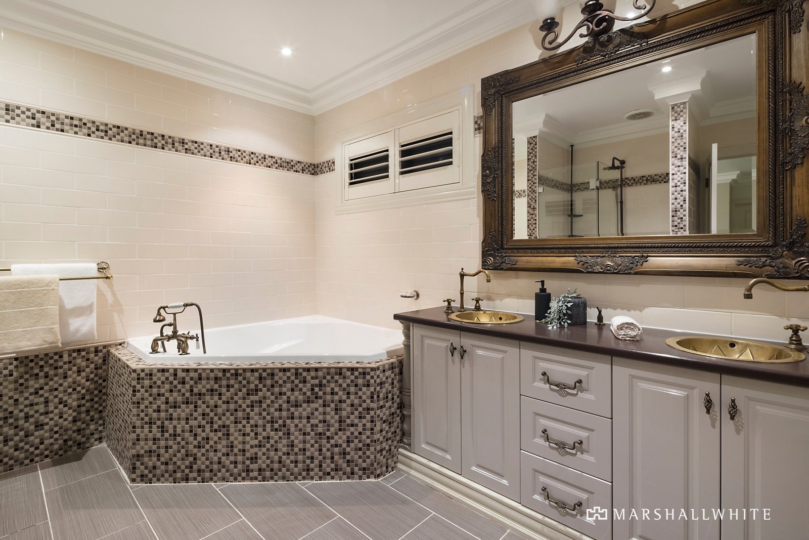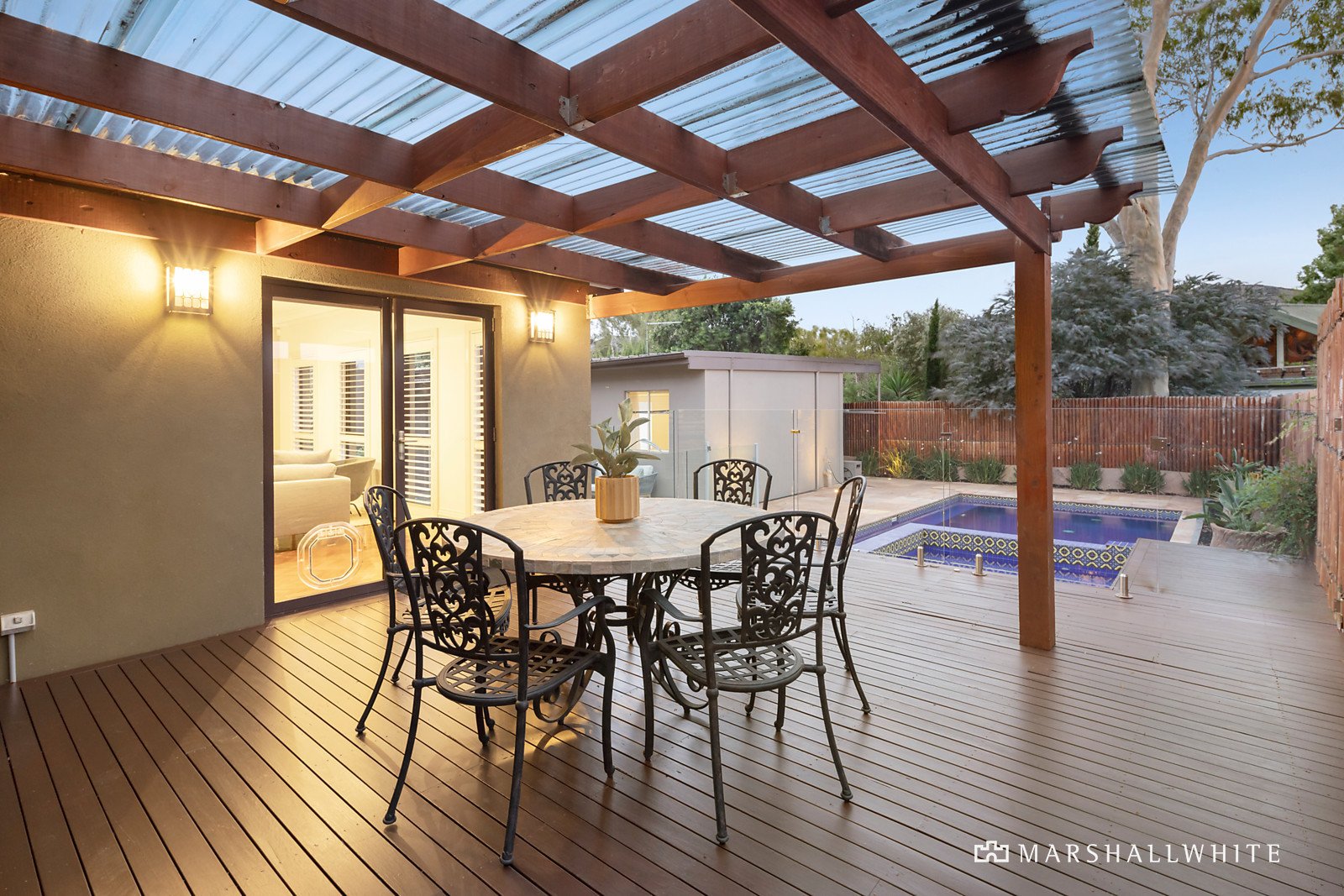 Exclusive design has created the perfect family oasis, with a sophisticated interior, a self-contained guest residence and poolside outdoor living. This impresses from the moment you see this elegant home's high-set position, metres from Brighton Secondary College and minutes from shops, cafes and Dendy Park. Open the remote-control gates, step inside and dis-cover three living zones, five bedrooms and a study, an Ilve range in the gourmet kitchen, herringbone timber floors and plantation shutters. Families will love the excellent zoning that includes an upstairs retreat, and the grand-scale parents' wing impresses from the moment you see the feature wallpaper, ensuite with a spa bath and brass basins and tapware, and the two-way walk-in wardrobe. Plan on enjoying this home year-round with a gas/solar heated pool and spa, undercover deck for summer, a large dining room for entertaining, and a lounge with a wood heater for wintry days. The self-contained apartment can be your one-bedroom guest wing, teenage retreat, au pair accommodation or the ultimate pool house with a bathroom, lounge and kitchenette. A first-class home that matches style with practicality, thanks to generous storage space, ducted heating and air conditioners, a timber-fronted double garage with three-way access, and additional onsite parking for you and your guests.