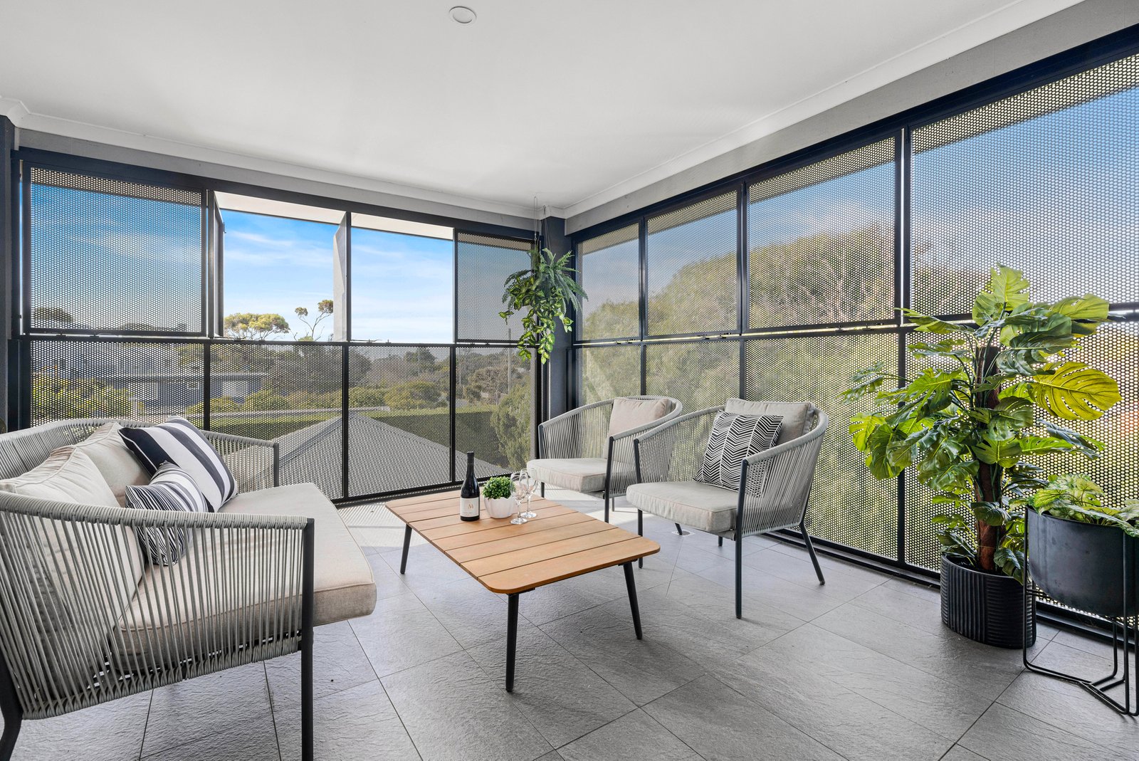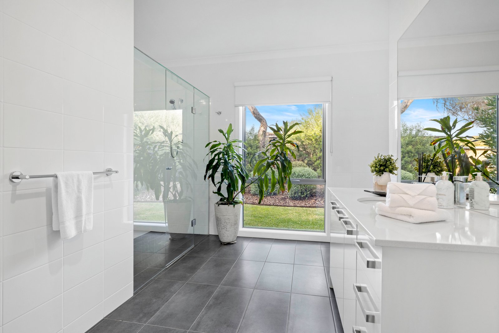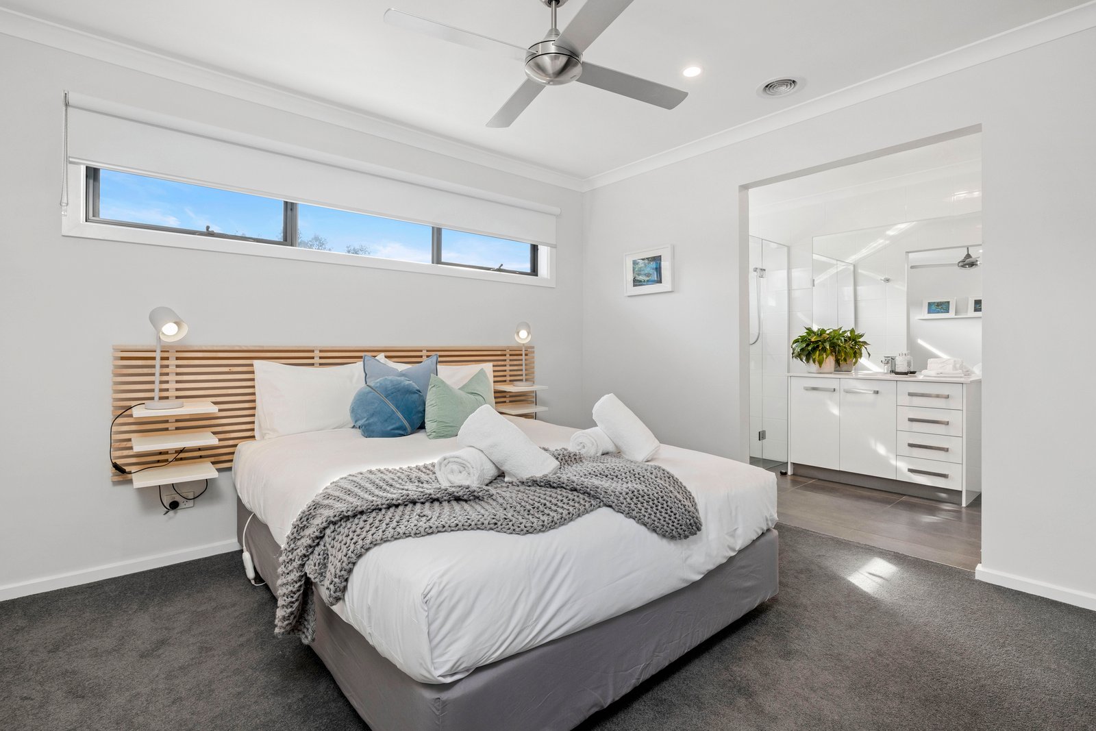 Also opening to the balcony, the spacious primary master suite is made complete with a walk-in robe and contemporary ensuite in this exceedingly comfortable layout, which includes two additional ensuites, a full family bathroom, a powder room, ducted heating and multiple split-system heating and airconditioning units, as well as an alfresco shower and a double garage behind lock-and-leave electronic gated entry.