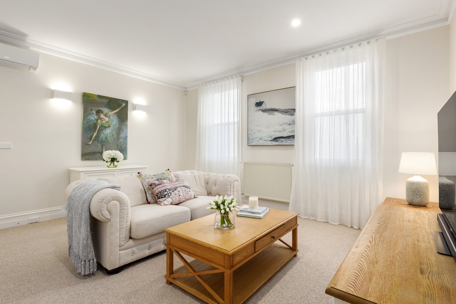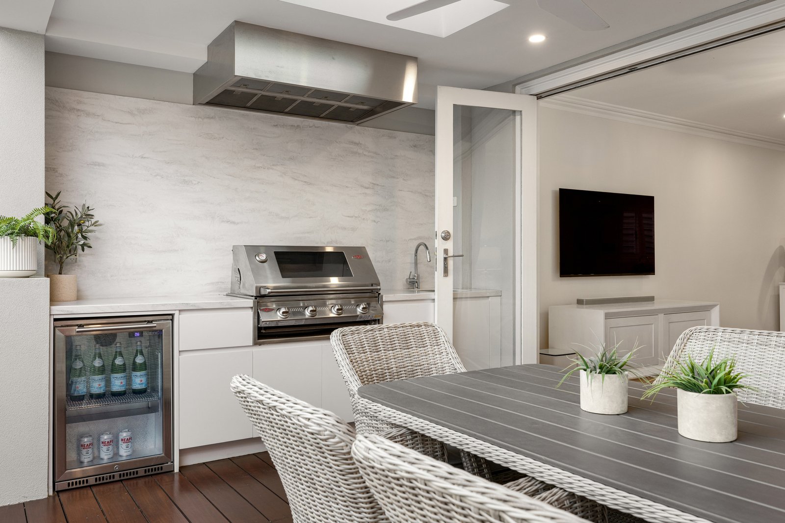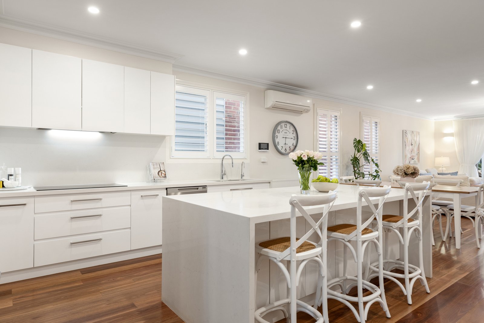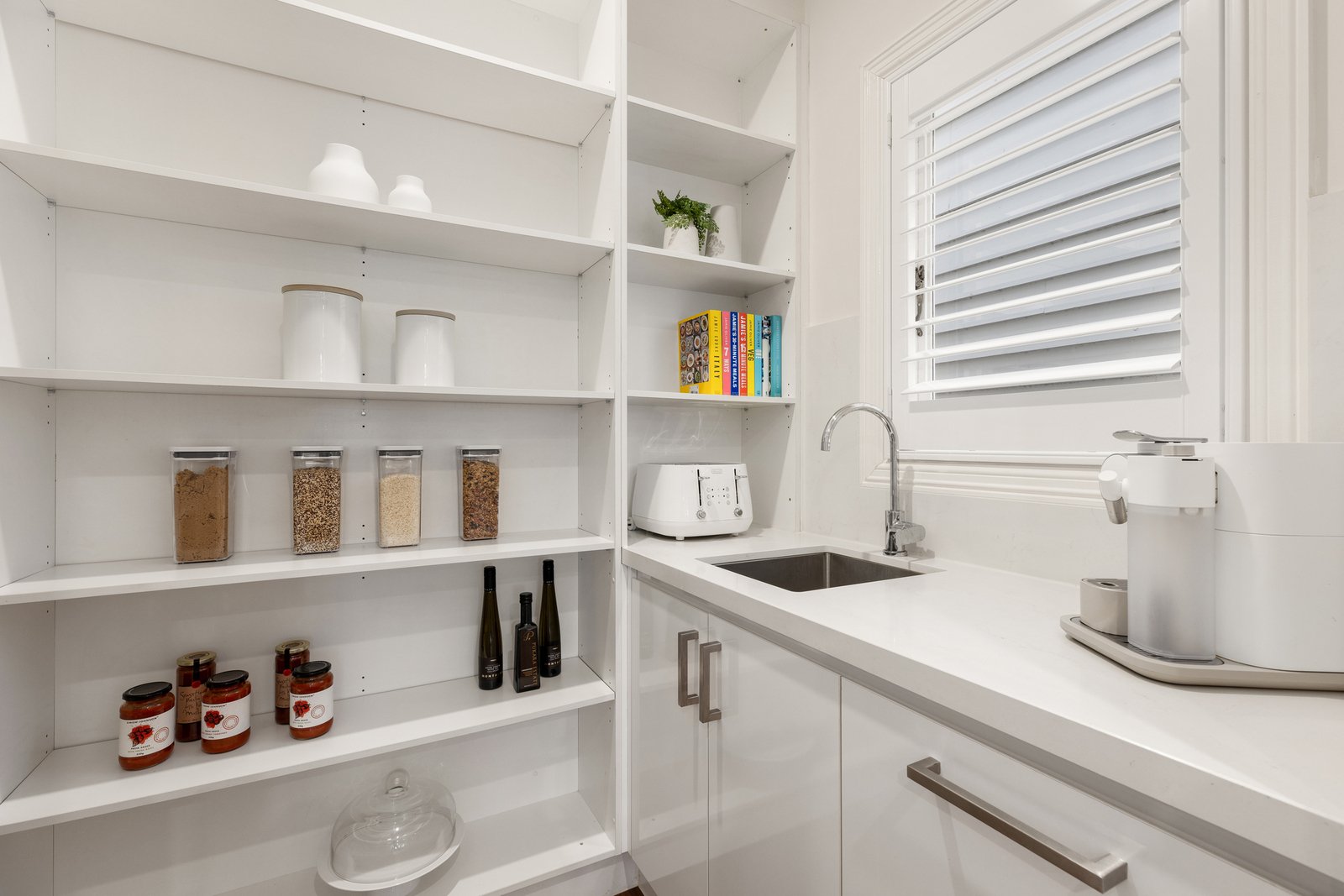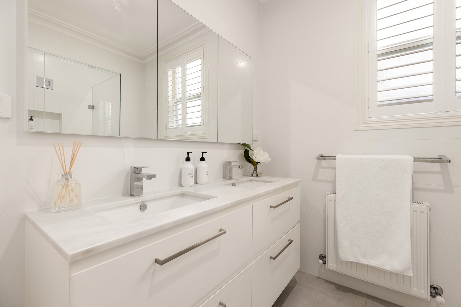 Created to sit harmoniously within the heritage streetscape, the inspired terrace facade unfolds from formal low-maintenance gardens into expansive interiors, defined by high ceilings, bespoke finishes and brilliant natural light. Spotted gum floors add warmth to the entry level, designed to flow from a quiet home office to enormous open-plan living and dining areas for full-scale entertainment and connection. The kitchen showcases sleek stone surfaces, dual ovens and an induction cooktop, connecting to a concealed butler’s pantry that keeps everything beautifully organised. Beyond bi-fold doors, the deep garden extends the living environment to an undercover deck with a built-in barbecue outdoor kitchen and a heated plunge pool, creating a true sense of escape within the city.