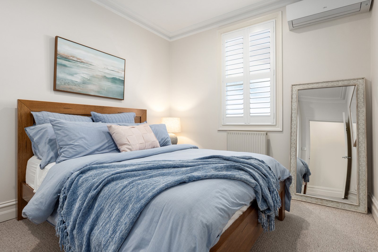 Upstairs, the main suite takes in serene treetop outlooks, enhanced by double glazing, a private balcony, a reading nook, walk-in robes and an elegant en-suite. Three further bedrooms with built-in robes, one adaptable as a potential living area, share a light-filled central bathroom, while additional features include hydronic heating, split-system air conditioning, CCTV, alarm, automated irrigation, a powder room and a large laundry. With an address that perfectly bridges the calm of leafy streets with the vibrancy of Port Melbourne’s lifestyle precinct, this is a home designed for families seeking space, ease and privacy within easy reach of excellent schools, light rail, and the bay.