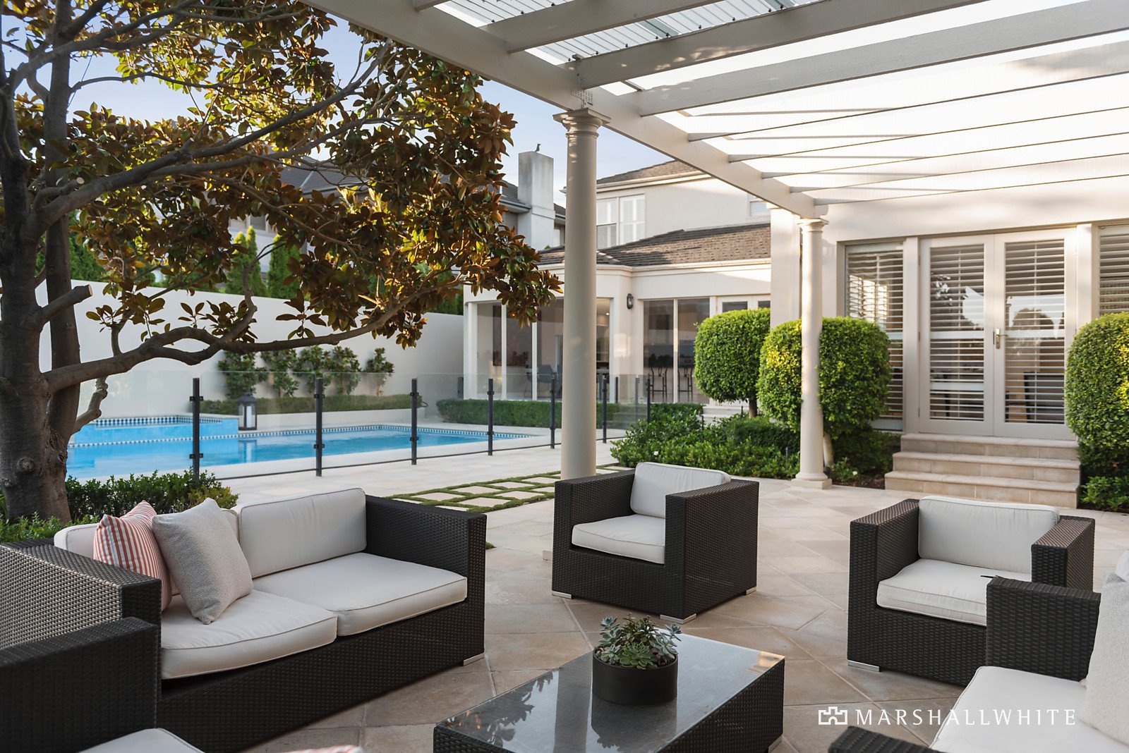 This elegant and sophisticated family residence graces a deep garden allotment of 1,671sqm (approx.) in keeping with its status amongst the magnificent surrounding homes in this locale. Originally built with meticulous attention to detail this impeccably maintained European-inspired family residence, of grand proportions over two levels, is set in neatly manicured fully irrigated gardens lined with hedges. Highlighted by a distinctive rendered facade introducing a stunning, luxuriously appointed interior featuring zoned living and indoor/outdoor entertaining spaces of the highest standards; including a gas heated pool with spa and night-lit north-south tennis court delivering unparalleled family excellence in enviable surroundings.