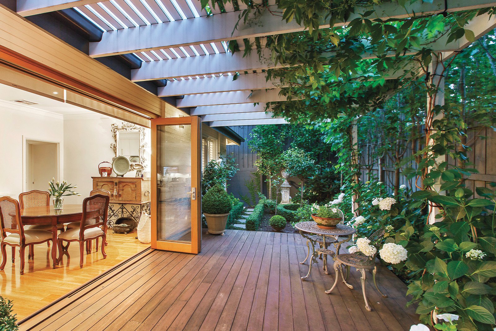 Plantation shutters and polished hardwood floors add to the contemporary elegance that defines the expansively proportioned living and dining room. The gourmet Miele kitchen boasting stone benches and a casual dining area open through bi-fold doors to the private leafy landscaped north-facing garden with pergola covered entertaining deck. The main bedroom with zoned heating and cooling system, designer en-suite and built in robe is complemented by an additional bedroom plus study/3rd bedroom and a stylish bathroom.
