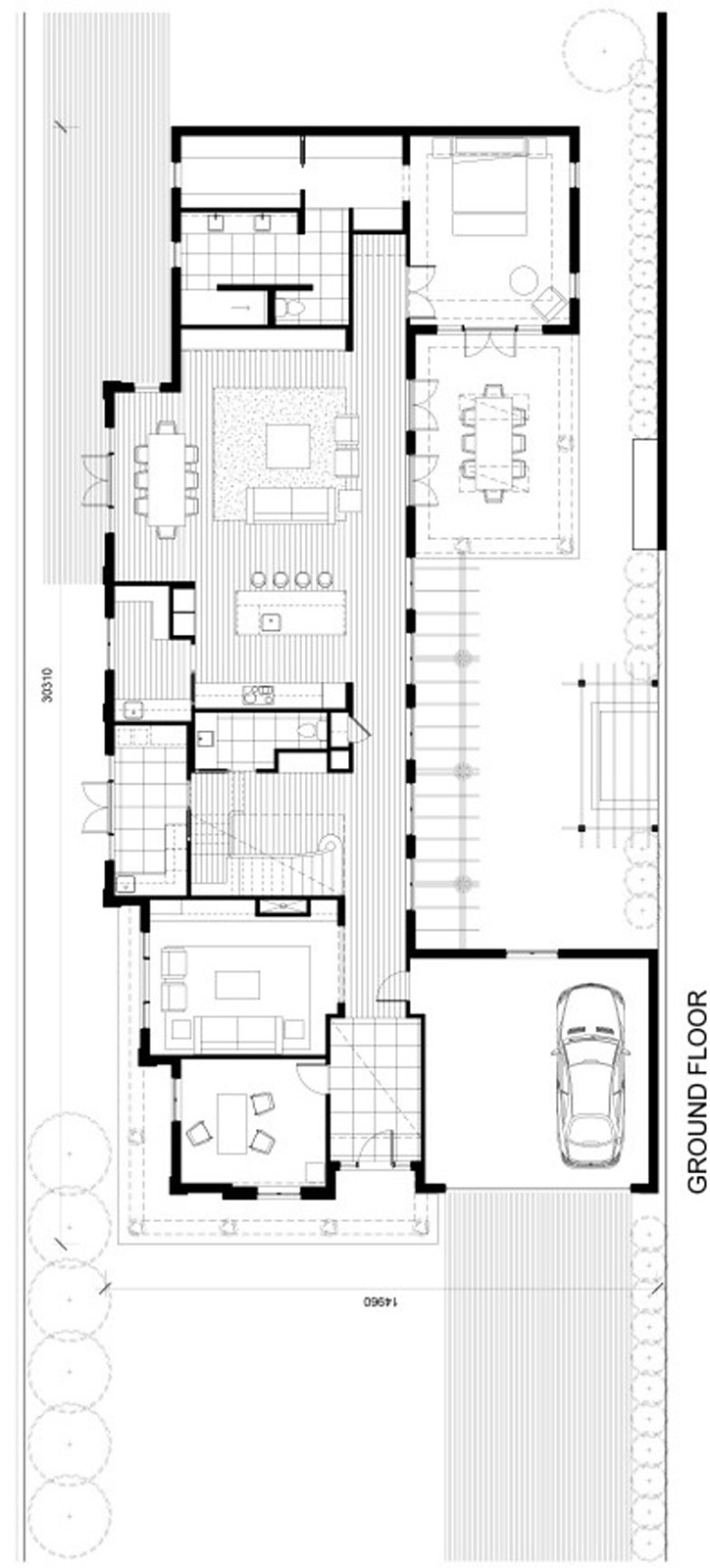 No home is complete without its garden. It is a credit to Verde that the house and garden are seamlessly integrated. The gallery, with its timber parquetry flooring, is the link between house and garden. With its pairs of timber French doors and feature glazing, it opens the living area to a pergola featuring the signature columns with rugged timber framing over. Beyond is a lush perimeter garden with a water feature, an essential element in garden design, and adjacent is the alfresco outdoor living area, with its naturally-lit roof, completing a unique combination of living spaces providing the greatest possible range of living environments.