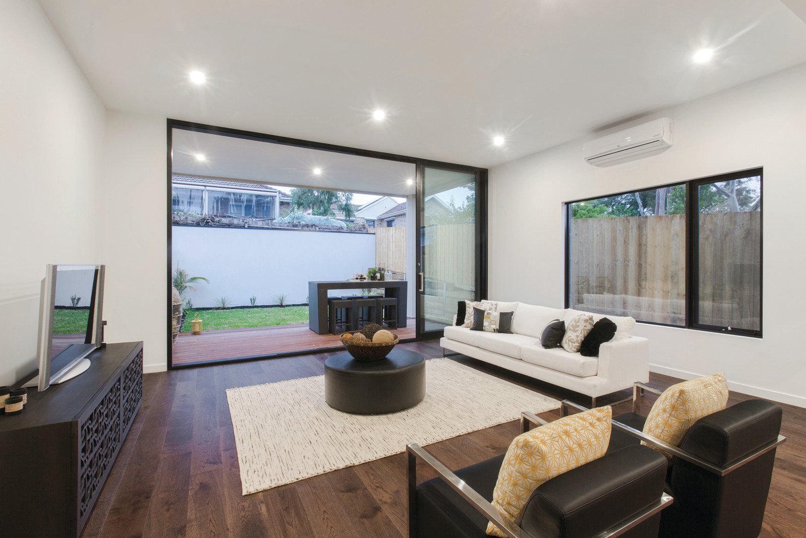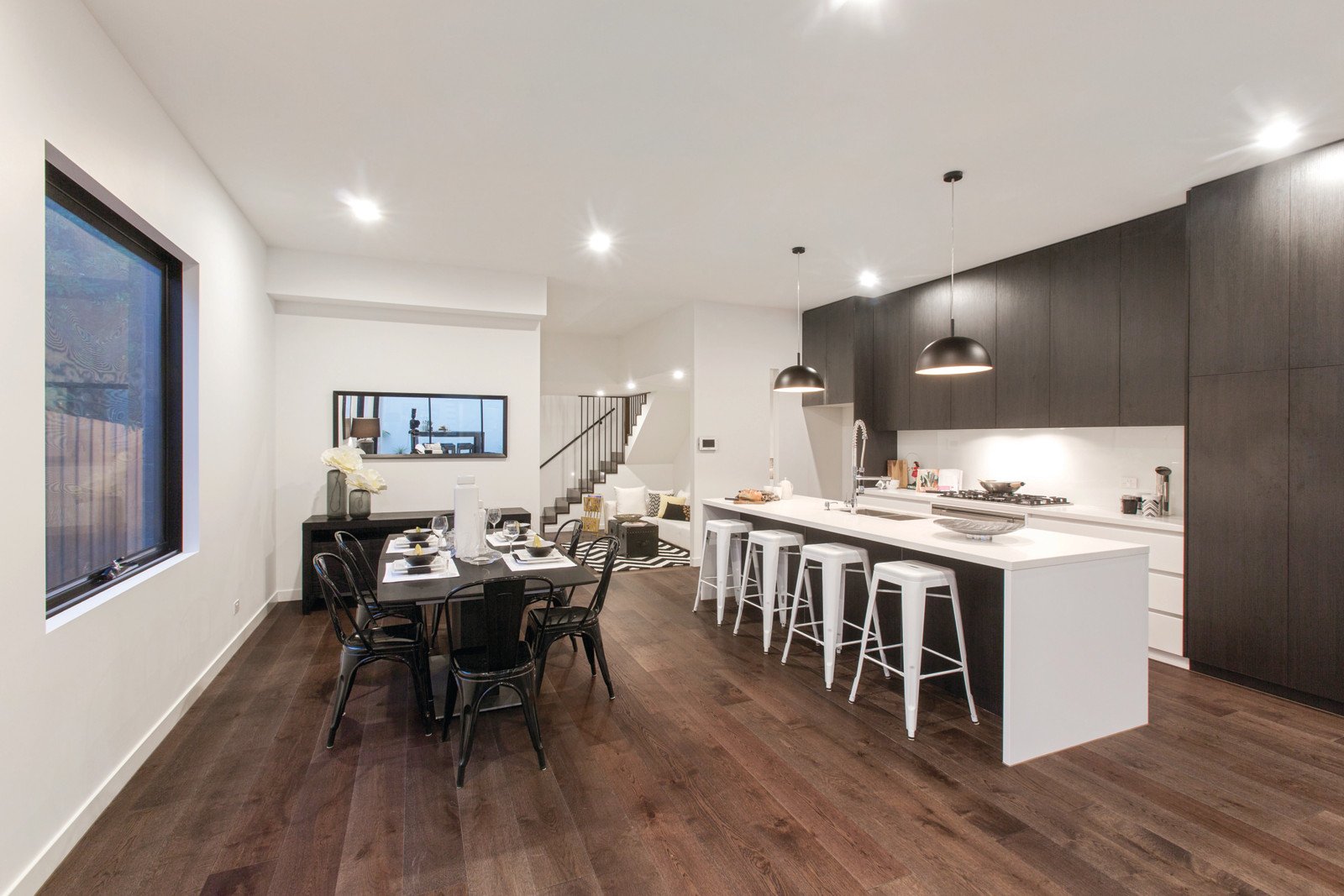 A passion for perfection has created a new way of living in Bentleigh East. Surround yourself with luxury and the finest finishes, crafted by the Knight Building Group and ready to move into. Superbly designed outside and magnificent inside, the four-bedroom and study spaciousness excels for low-maintenance living. Large living areas have garden and courtyard views, and reveal chic timber floors, soaring ceilings, and stacking sliding doors that open onto an undercover deck and easy-care garden. Every room and every feature is exquisite. A steel and timber stairway takes you to the beautifully designed second storey, where the main bedroom suite has a state-of-the art ensuite with a sculptural wave vanity, the finest tapware and Blum cabinetry. Nothing but the best is on show in the sophisticated kitchen, including Bosch appliances, a stone island bench and breakfast bar, and timber veneer cabinetry. Designer finishes shine bright in the three bathrooms, and the feature-rich interior is on trend and indulgent. Split-system air conditioners let you customize heating and cooling, there's intercom entry, treetop views from the main bedroom, and all the space you've been looking for. Convenient location close to parks and the esteemed Yarra Yarra Golf Club, moments from Bentleigh Farmers' Market and East Bentleigh Primary School, and within easy reach of Southland and local shops.
