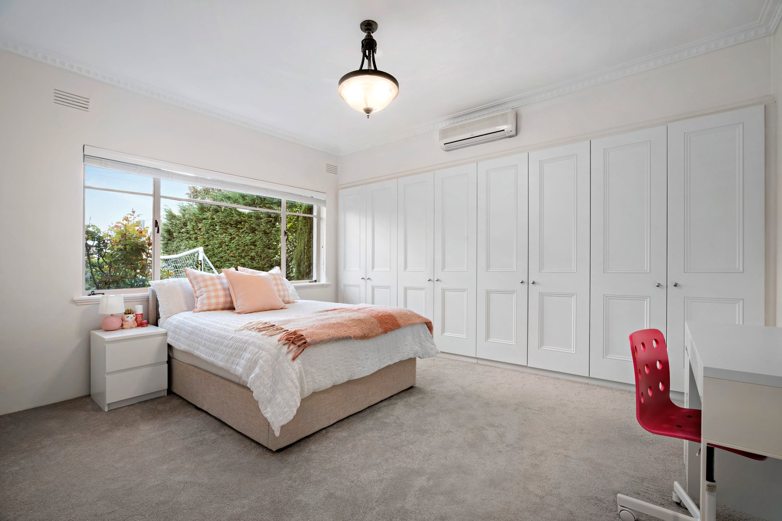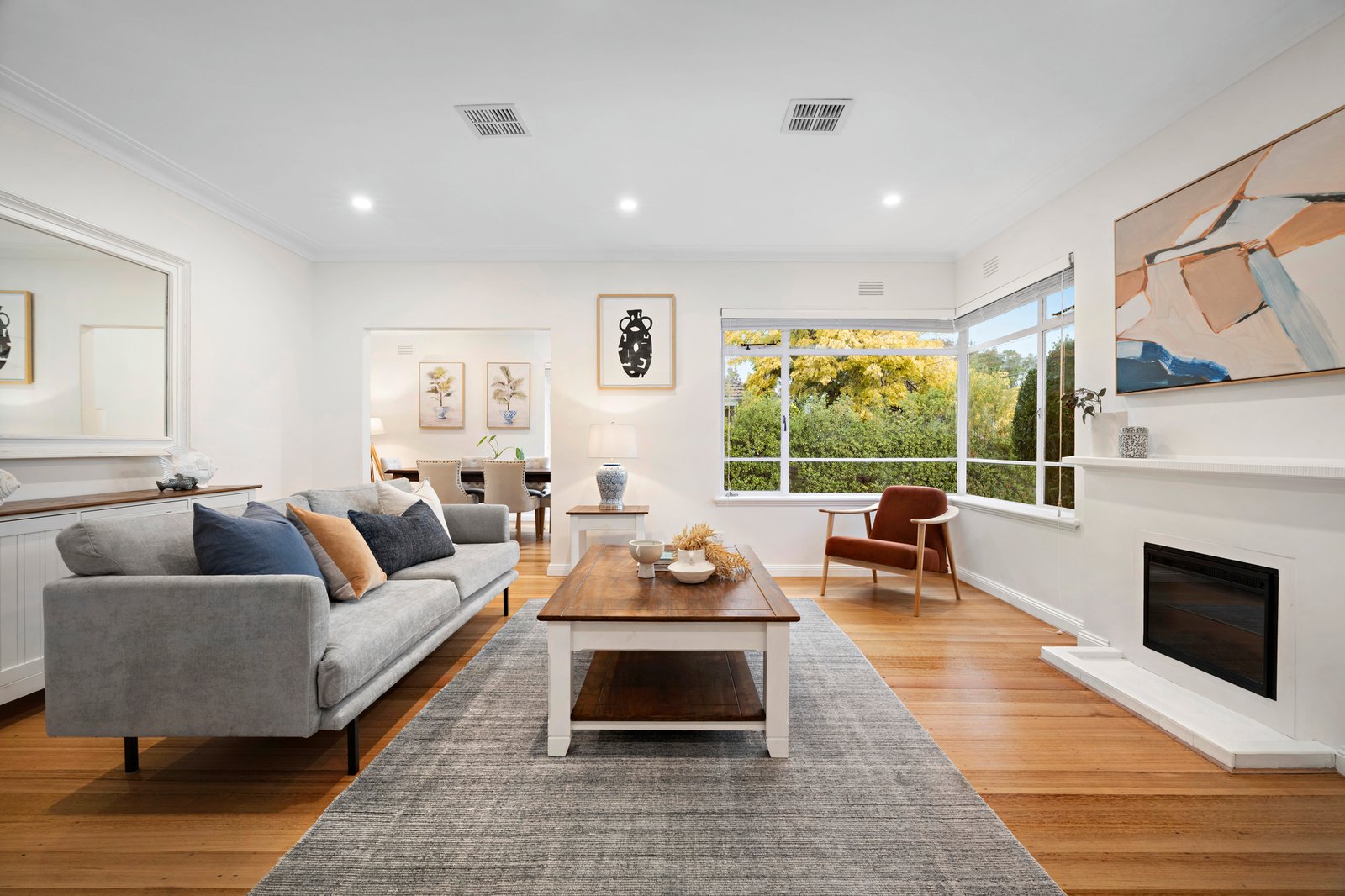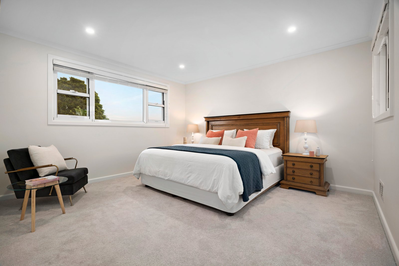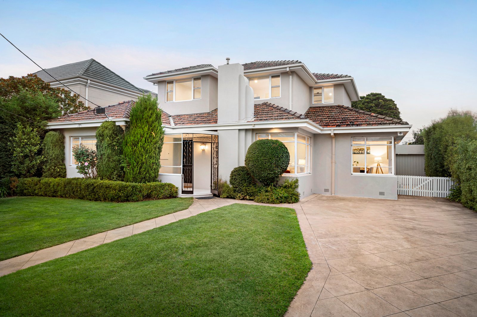 Set behind automated gates with intercom entry, with an expansive front lawn and secure off-street parking for three cars, the solid brick-rendered home presents plenty of curb appeal with the recently completed upper-level extension perfectly marrying with the home’s striking architectural mid-20th-century charm.