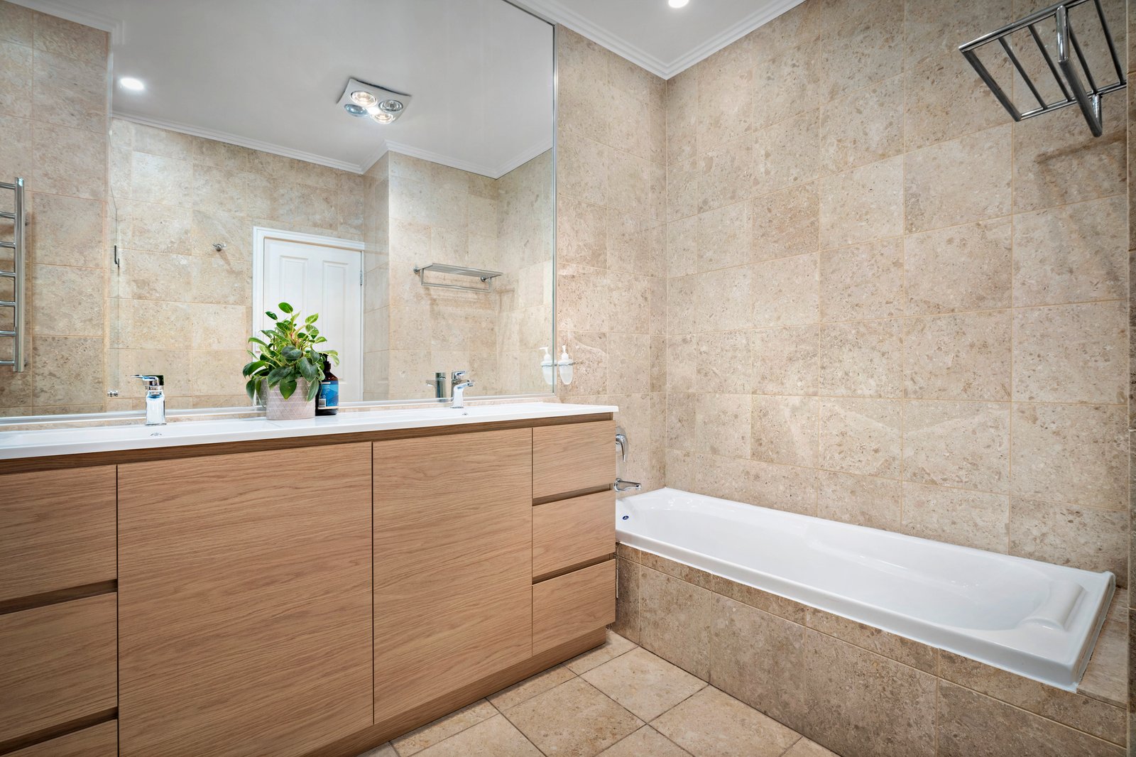 With four bedrooms, three bathrooms, a home office, a study nook, plus the studio the home’s adaptable floorplan invites bespoke zoned family liveability. The upstairs parents’ domain comprises two bedrooms including the main with walk-in robe, a luxe bathroom with built-in tub and walk-in shower and a powder room. There are an additional two bedrooms with built-in robes downstairs plus another study, along with a lavish travertine-tiled main bathroom. Additional features include split system heating/cooling, ducted heating and cooling, and a fitted laundry/utility room.