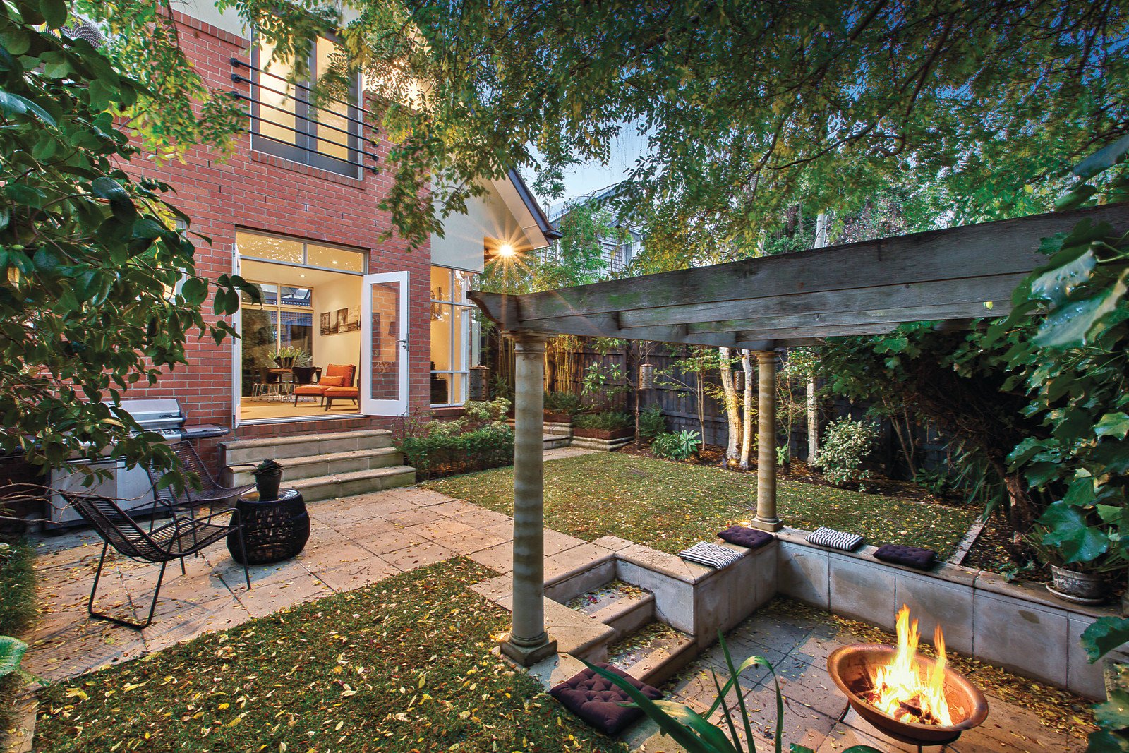From the street, the house promises character and charm with a leafy garden and classic facade. Inside there is a feeling of tranquillity and openness looking out to the three garden areas. A generous entryway opens directly onto a study and a sitting room overlooking the courtyard, while a glass sided passageway takes you past the courtyard, powder room and concealed laundry. It leads to a smart granite, timber and euro stainless steel kitchen cleverly elevated to integrate with a family dining and living area and sharing views to the courtyard and the rear garden. Three bedrooms upstairs have vaulted ceilings with BIRs, master with ensuite plus a family bathroom. Other features include plantation shutters, ducted heating, split-system R/C air conditioners, security system plus ample storage, gas mains barbeque, remote garage, tandem off-street parking and rear lane access if desired.