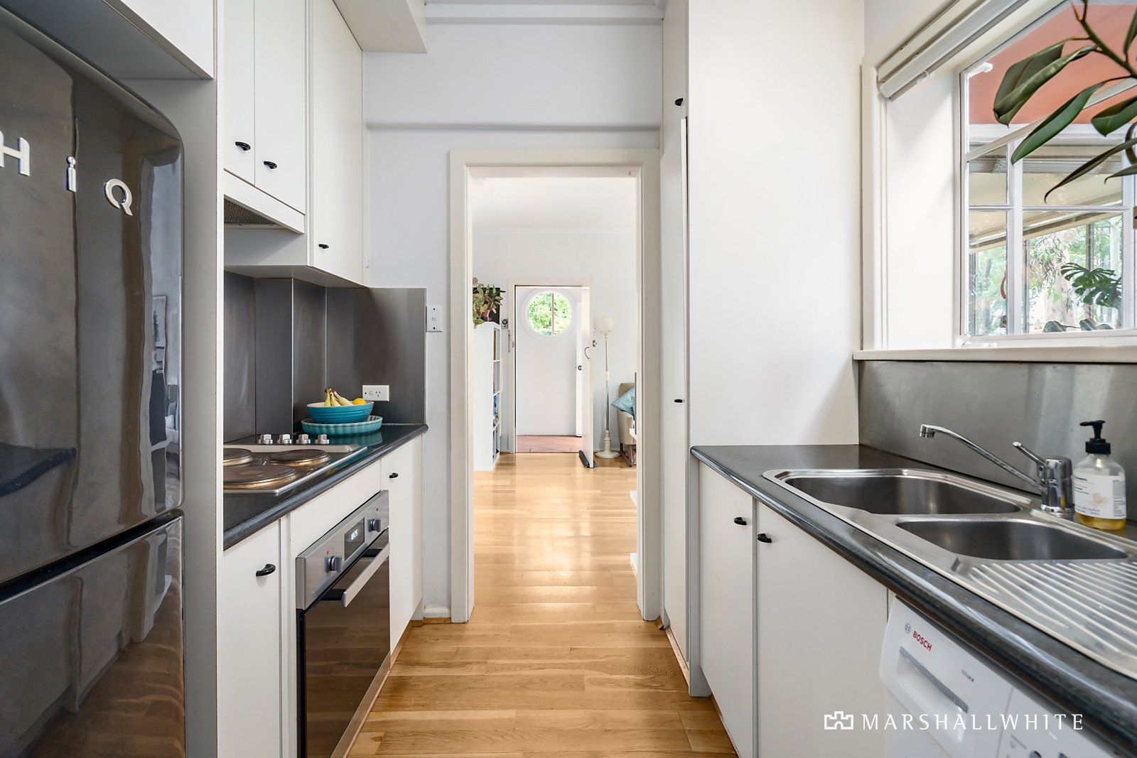 Exclusively tucked-away in one of Toorak's most tranquil and tree-lined streets, this delightfully garden-surrounded, single bedroom apartment is a landmark example of 1940s, early modernist architecture by the renowned John William Rivett. An icon of inner-suburban Melbourne, within the heritage-listed 'Caringal Flats' building, this is an apartment with some genuine points of differentiation that extend well beyond the privilege of its own lock-up garage. Adorned with huge windows, streams of natural light and exquisite garden outlooks, the lounge / dining is generously proportioned with timber-toned flooring, seamless balcony connection and a separate kitchen. Large mirrored built-in robes enhance the home's sense of proportion while offering abundant storage, plus there is a fitted washing machine in the kitchen included, as well as electric wall-panel heating, secure intercom entry and a large private storeroom. Walk easily to all the charming cafe culture, fine dining and boutique shopping of Toorak Village, as well as city-bound trams along Toorak Road, trains from Heyington Railway Station and the endless trails of the Yarra River.