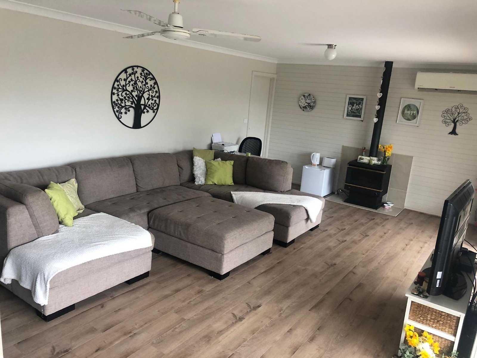 - Gas fireplace, gas heater, 2 x split system A/C, 2 ceiling fans