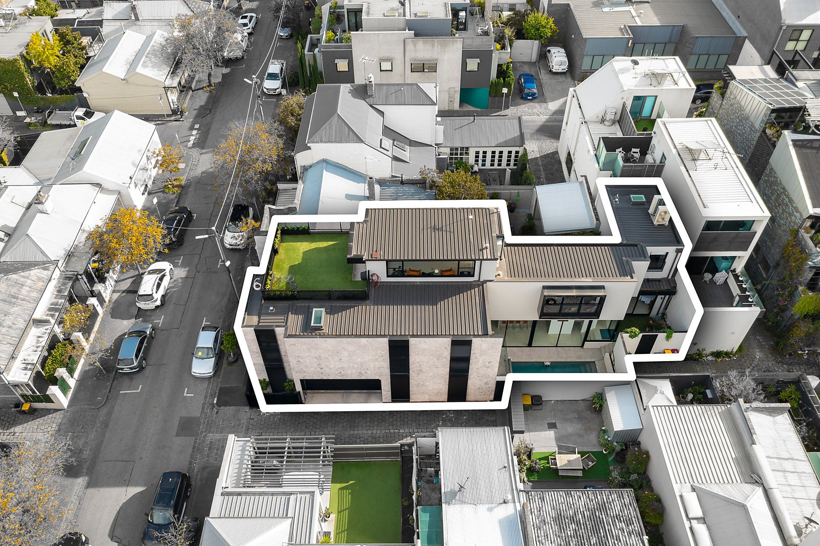 Exclusively situated in historic Emerald Hill just a stones throw from Clarendon St shops, restaurants, numerous trams, Albert Park Lake, Botanic Gardens, schools and a short stroll to the Arts precinct, this remarkable home with secure entry, video intercom, remote exterior louvres, slab and hydronic heating, zoned air-conditioning, powder-room, laundry with plenty of storage and internally accessed double garage.