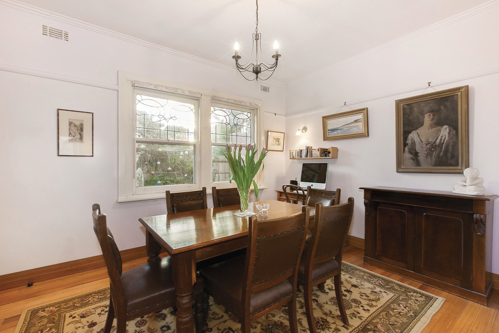 In a prized precinct defined by its charming period personality, quiet family focus and wide Oak Tree lined boulevards, this delightful three bedroom home's current day comfort is perfectly matched by a range of flexible future possibilities. On a generous 585sqm garden block with coveted northerly rear aspect, character filled proportions provide an impeccably presented light filled family environment enriched by unique leadlight detailing, a magnificent upstairs retreat ideal as a large family or substantial bedroom domain and a separate studio/ workshop of three principle rooms. Move straight in, perhaps update, in time renovate or even rebuild (STCA) as your needs dictate, all the while relishing the distinct advantage of walking proximity to sought after Roberts McCubbin Primary and Kingswood College, only moments to PLC, Deakin University, Box Hill Golf Course, Station Street shops and transport. Features high ceilings and cornices, gas appointed timber kitchen, updated bathroom, paved alfresco entertaining, ducted heating and multiple off street parking.