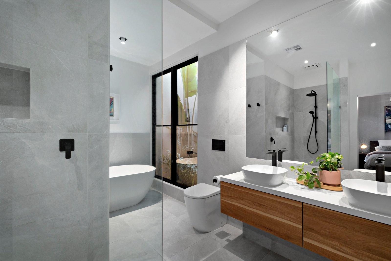 The master suite, thoughtfully positioned on the ground floor with a walk-in robe, featuring a luxurious ensuite ,with free standing bath overlooking a leafy light well. The gourmet kitchen is a statement in both style and functionality, boasting premium appliances, stone bench tops, and an oversized island — perfect for entertaining. The expansive living and dining areas spill effortlessly onto an established landscaped garden, ideal for family gatherings and year-round entertaining.