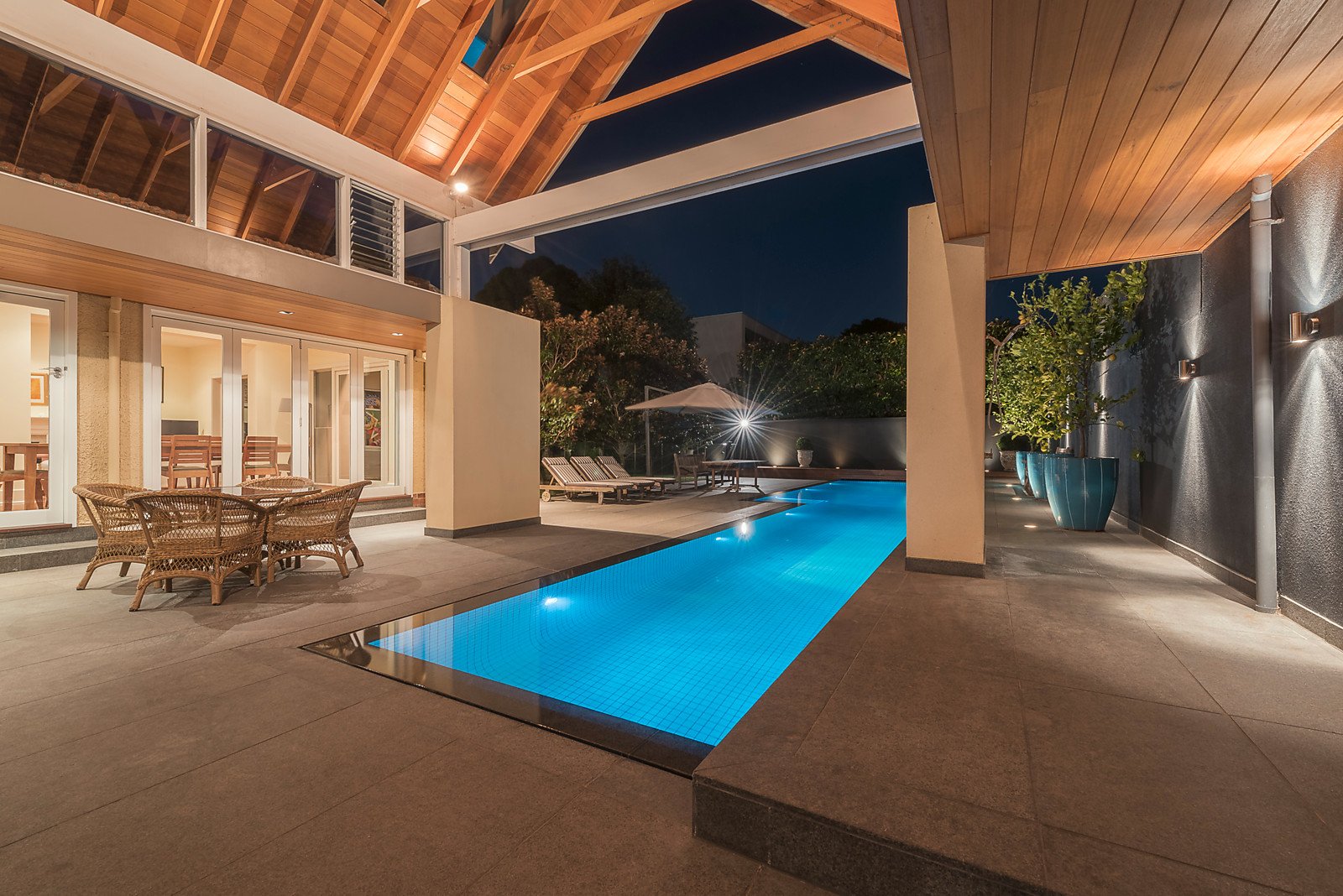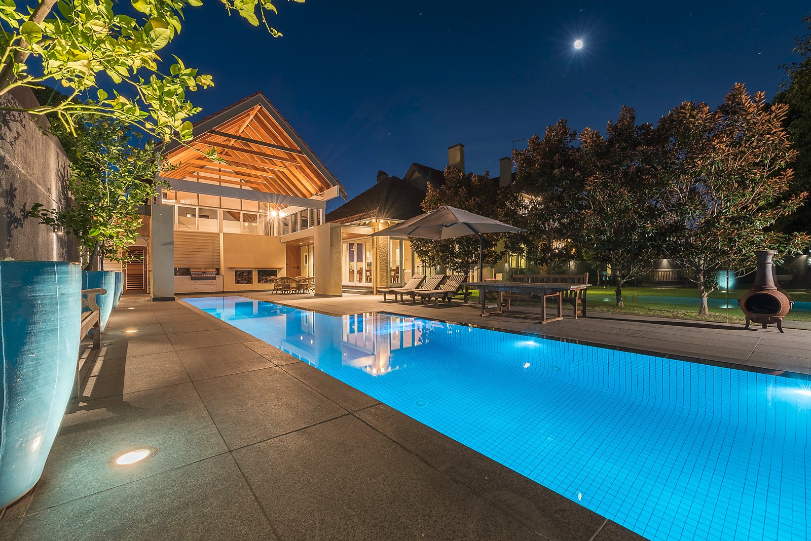 The wonderful first impression created by the grand portico entrance and imposing custom designed double doors is echoed through the elegant sitting room with open fireplace, evocative formal dining room with gas fireplace and a study also with an open fire. Timber floors flow through the wide hall to the superbly appointed gourmet kitchen and expansive living and dining room (open fireplace). Two sets of bi-fold doors open to a sensational outdoor precinct featuring a breathtaking covered year round al fresco terrace with BBQ and open fire, gas heated lap pool and picturesque north oriented private gardens. The beautiful main bedroom with walk in robe and lavish marble ensuite enjoys its own space downstairs while a fabulous children's zone upstairs comprises four over-sized bedrooms with built in robes, a bathroom and balcony. A large recreation or media room is positioned above the double garage.