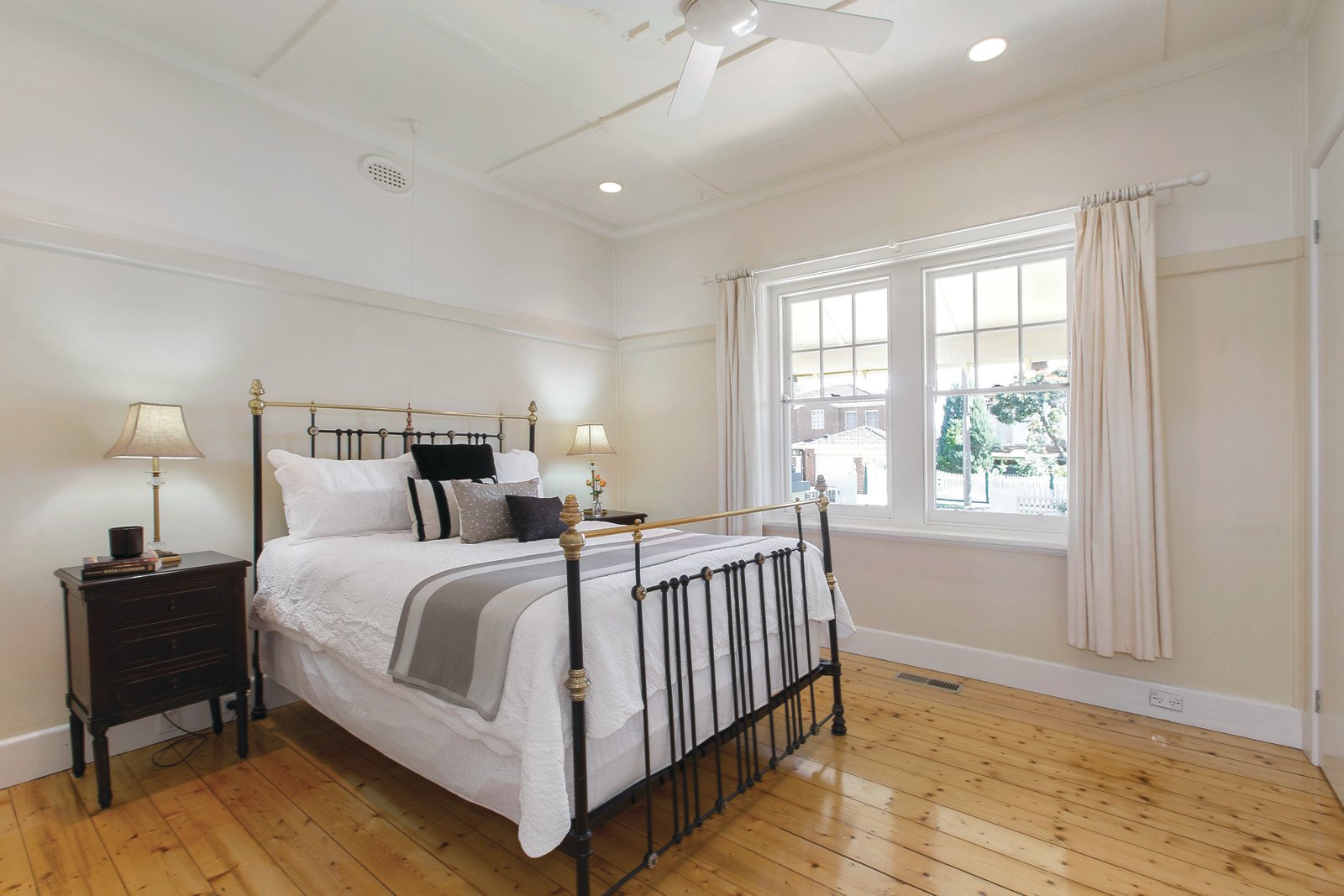 Behind a picket fence tall Eucalypt trees frame the entrance to the home which features an attractive façade with bay windows introducing the interior, highlighted by Baltic Pine floors, decorative ceilings and a neutral toned decor. The accommodation comprises a large formal sitting room with adjoining dining both with OFPs, five bedrooms, two downstairs plus two pristine family bathrooms, large study, powder room and laundry. Complemented by an expansive informal family living and dining room, serviced by a well-equipped kitchen with Smeg appliances and CaesarStone benchtops, flowing to a wide deck and slate paved alfresco dining and barbeque area. Other features include alarm, ducted heating & cooling, water tank, workshop, storage shed and off-street parking.