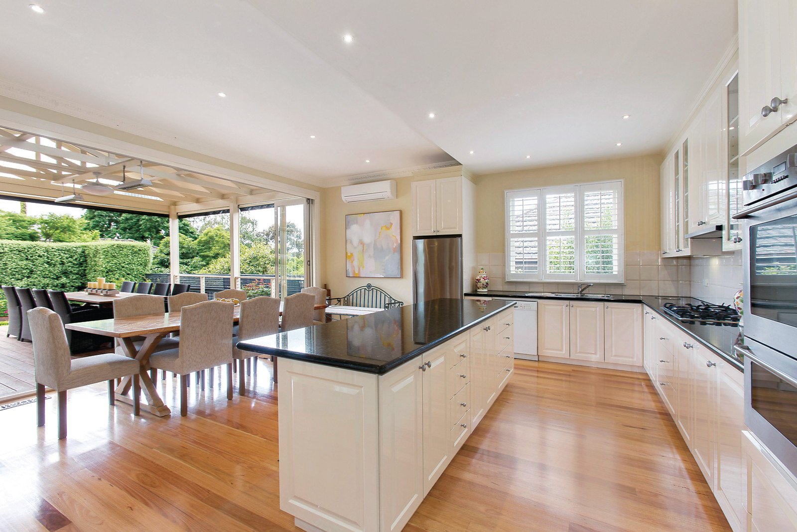 The hall marks of Deco architecture including ornate ceilings, leadlight windows and timber floors add wonderful character to the central hall, elegant sitting room with open fireplace and formal dining room (OFP). Natural light streams through the modern granite kitchen with fitted study nook, sunny dining area and inviting living room all opening through bi-fold doors to a large covered Al Fresco entertaining deck and private north-facing hedged garden. Fabulous accommodation comprises a main bedroom with en-suite and WIR/BIR, three additional fitted bedrooms and a well appointed bathroom.