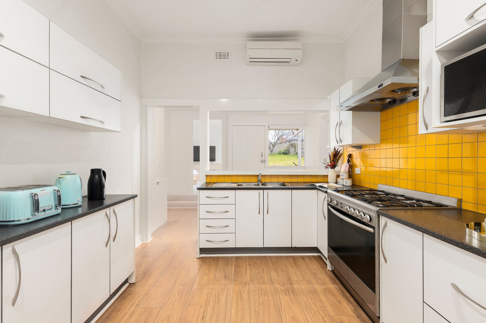 Lovingly maintained with a flexible floorplan, the home currently reveals an up dated and central kitchen with semi-attached dining / living and easy scope to turn one of the bedrooms into a lounge. Rich in period heritage with decorative ceilings and a welcoming ambiance, the home also features a large main bedroom with an ensuite, a second bathroom, laundry, as well as north-facing outdoor living, a lock-up garage with driveway parking for an extra four vehicles.