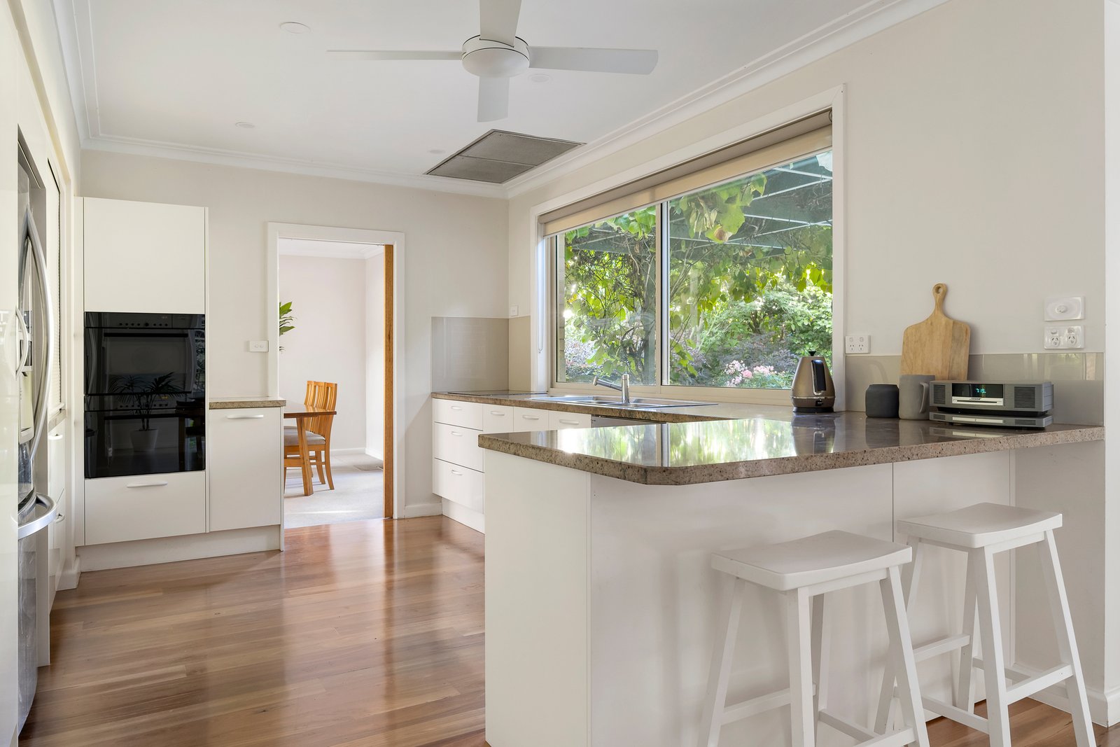 The existing brick family home features a flexible zoned floorplan with an entrance foyer and hallway flowing to five bedrooms all with built-in robes, or four plus a study, main with an ensuite, a fully-tiled family bathroom with a spa bath, powder room and laundry. Through to a formal sitting room with adjacent dining room plus a generous family domain incorporating a superbly equipped kitchen with granite bench tops, Smeg, Asko and VZug appliances. Opening to an outdoor dining and entertaining area shaded by a vine-clad pergola overlooking the leafy rear garden – perfect for relaxing in the outdoors. Other attributes include an alarm, R/C air conditioners (living and bedrooms), OFPs, overhead fans, ample storage, large garden shed/gym, remote double garage plus off-street parking and turning area.
