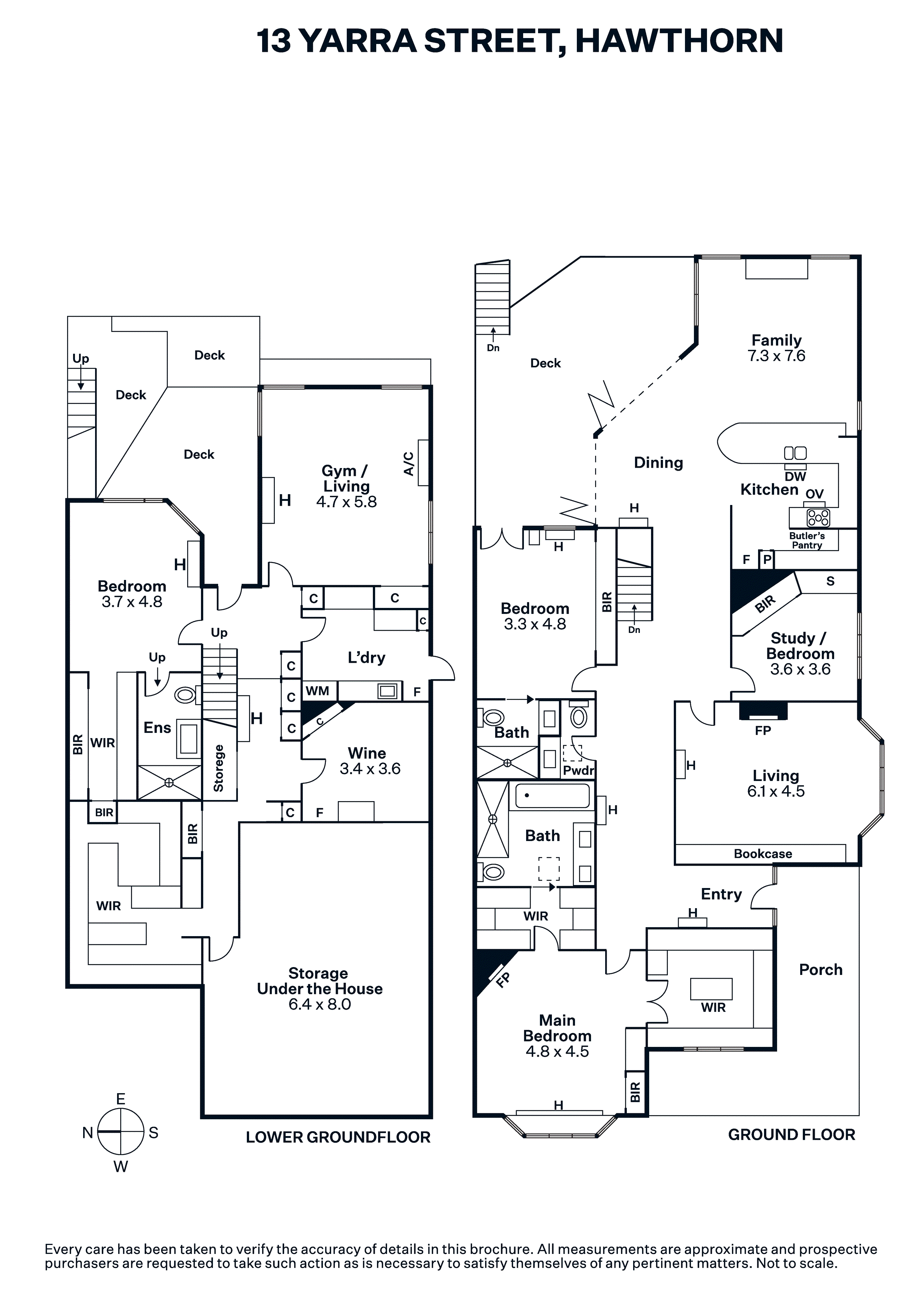 The unexpectedly spacious interior, over two levels, is highlighted by a flexible layout and contemporary living spaces. Featuring oak herringbone parquetry floors with traditional front rooms on the upper level including a formal sitting room with OFP, a powder room, three upper-level bedrooms, main with two WIRs and ensuite, secondary bedroom with ensuite and access to the rear deck and a further third bedroom with BIR; optional as a study/home office or bedroom. A generous family living and dining area includes a sleek kitchen equipped with Caesarstone benches, walk-in pantry, prestige Asko and Smeg stainless steel appliances. Opening through bi-fold doors to a north-east facing deck with an electric awning overlooking the rear garden with a solar heated saltwater pool - perfect for alfresco dining and entertaining family and friends. The lower level has a fourth bedroom with a WIR and ensuite, a laundry, family retreat or gymnasium, dedicated wine room and extensive internal and under house storage, opening to decks alongside the pool. Other features include an alarm, hydronic heating, R/C air conditioner (living and lower level), overhead fans (main bedroom and family living), surround sound, water tank, and a carport/storage with access from Wyuna Avenue.