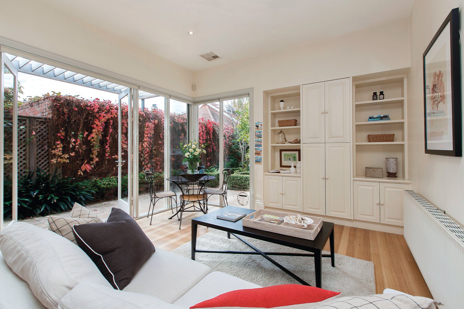 Nestled within a glorious north-facing garden setting in the Gascoigne Estate's premier street, this classically designed single level residence's enticing appeal is highlighted by its captivating elegance, generous proportions and light-filled style. A central foyer introduces a beautifully spacious sitting room with open fireplace and gorgeous formal dining both opening to a leafy private north-facing courtyard garden with water feature. Also opening to the lovely landscaped garden, the sunny living and dining room incorporates a modern well-appointed St George kitchen. The main bedroom with built in robe and smart en-suite is accompanied by a second bedroom with built in robe, bright bathroom and study or third bedroom. A superb lock up and leave solution, it also includes hydronic heating, ducted cooling, alarm, powder-room, laundry, ducted vacuum, security intercom and double garage with turning bay. Note: Separate title, no Body Corporate.