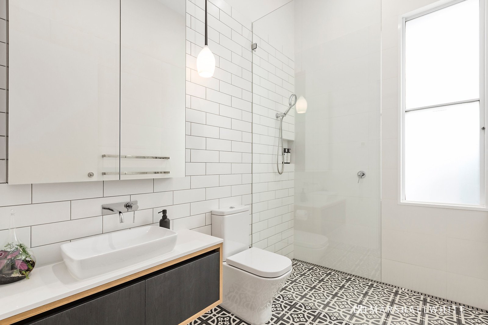 Behind the classic exterior, refined contemporary style is highlighted by sleek lines and Blackbutt timber floors in the sky lit hall and the evocative exposed bricks and steel girders that feature along the entire length of the expansive open plan living and dining room. Bathed in northern light, the beautiful space boasts bespoke joinery, an open fire and gourmet kitchen with stone benches, Miele appliances and a walk-in pantry, all overlooking a mural painted by Ruskidd. Bi-fold doors open completely to a private north-facing landscaped garden with bluestone terrace, a BBQ built into a concrete bench and secure off-street parking accessed via Butchers Lane. The gorgeous main bedroom with fitted walk-in robe and designer en suite is peacefully positioned downstairs while upstairs there are two additional bedrooms with built in robes, a home office, second living or 4th bedroom and stylish bathroom with bath.