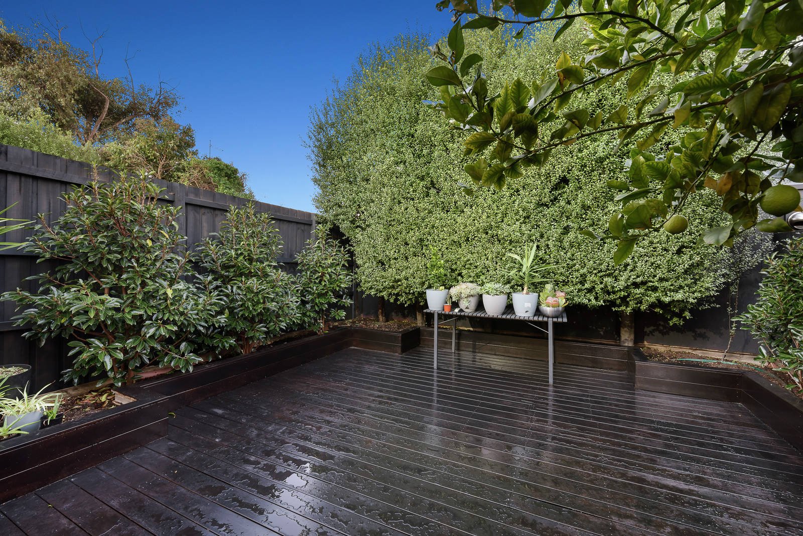 Presented in immaculate condition the split-level home features an inviting neutral toned, designer-styled interior with subtle period attributes and polished timber floors flowing to a downstairs main bedroom with BIRs and ensuite, a separate laundry, powder room and a light-filled north-facing kitchen, fitted with stone bench-tops, a Bosch stainless steel stove and Euromaid dishwasher. Overlooking a generous family living and dining room which flows through bi-fold doors to a sun-drenched north-east facing deck; with surrounding ornamental trees delivering a private oasis for indoor/outdoor relaxation and entertaining. Complemented by a further two upstairs bedrooms with BIRs alongside a family bathroom.