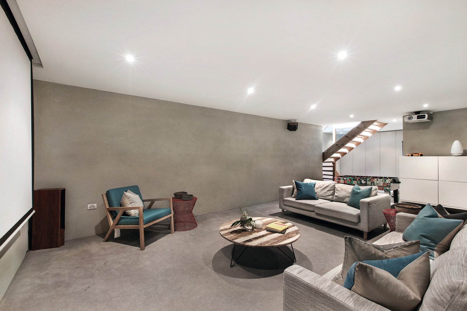 Come home to a private world of contemporary indulgence, where space, serenity and three levels of luxury living are simply outstanding.The Architect's own four-bedroom home, with a flexible study or genuine fifth bedroom, reveals the finest finishes, inspired use of the dual-access address, magnificent outdoor living, and a double garage. Streamlined design is flexible for whatever stage of life you're at. There's a ground-floor home office and bedroom with ensuite, spacious indoor-outdoor living, state-of-the art kitchen with Blum cabinetry and stone benches, and a basement cinema with rear projector and screen. Few inner-city homes offer so much, including three bathrooms, polished concrete floors, hydronic heating, 5-star energy rating, double glazing, integrated storage, closed-circuit TV security, and a double garage with laneway access. Impressive upstairs bedrooms have balcony access, and the main bedroom with ensuite and walk-in wardrobe has views to the Eureka Tower and city skyline. The outdoor living is exceptional, with tropical plantings, bluestone paving, an outdoor kitchen with 8-burner barbecue and refrigeration, and a large two-car garage that doubles as the perfect outdoor room for large-scale entertaining. Spacious, full of light and designed to harness cross-ventilation, this is a home without peer. Sought-after location lets you enjoy inner-city living at its best, with cafes, Clarendon St shops, trams and South Melbourne Market close by.