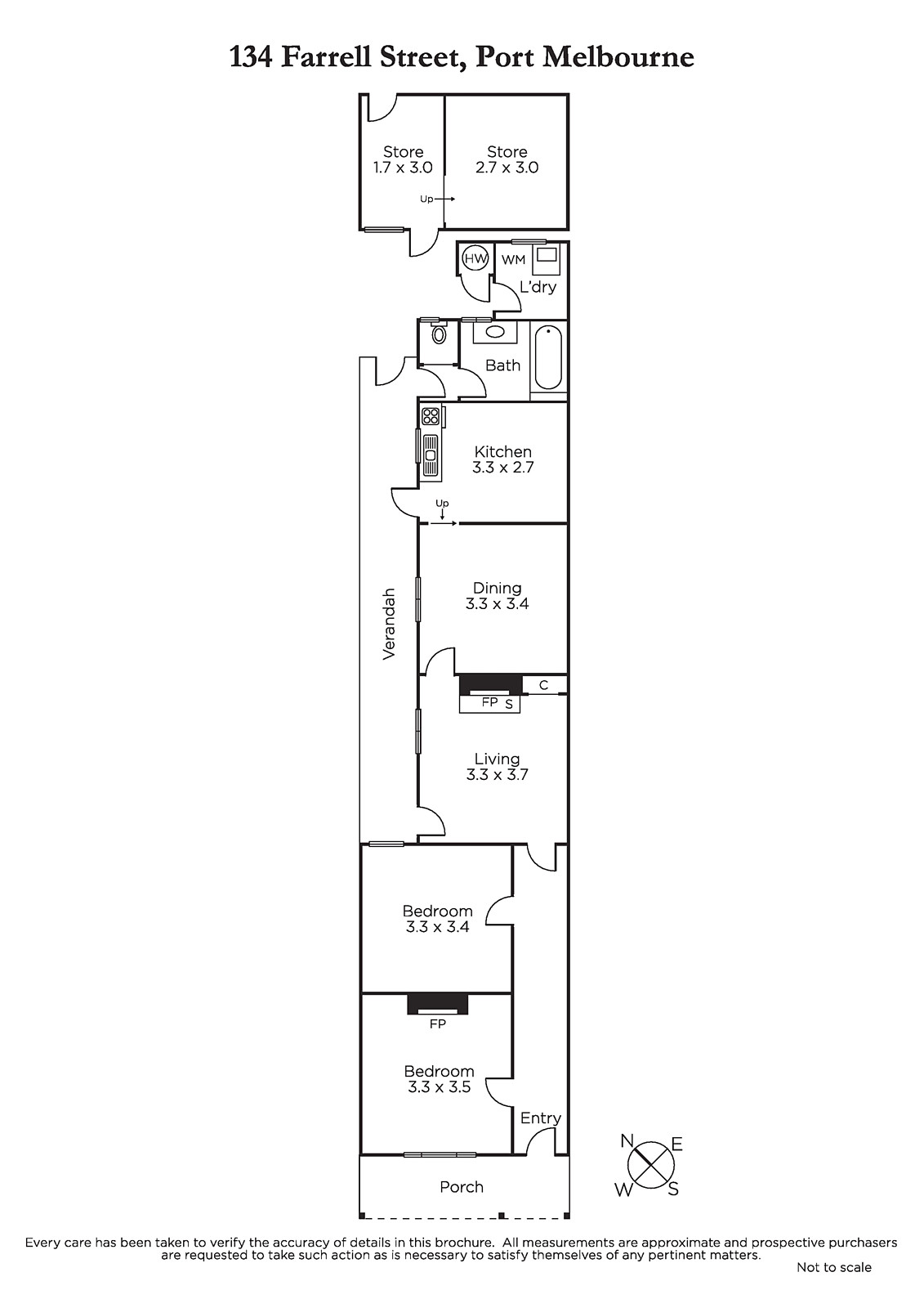 High ceilings are featured through the arched hallway, two generous light-filled bedrooms and a separate living room. The dining room and large kitchen lead out to the private garden with storage shed and gate to the rear lane. There is also a combined bathroom and laundry.