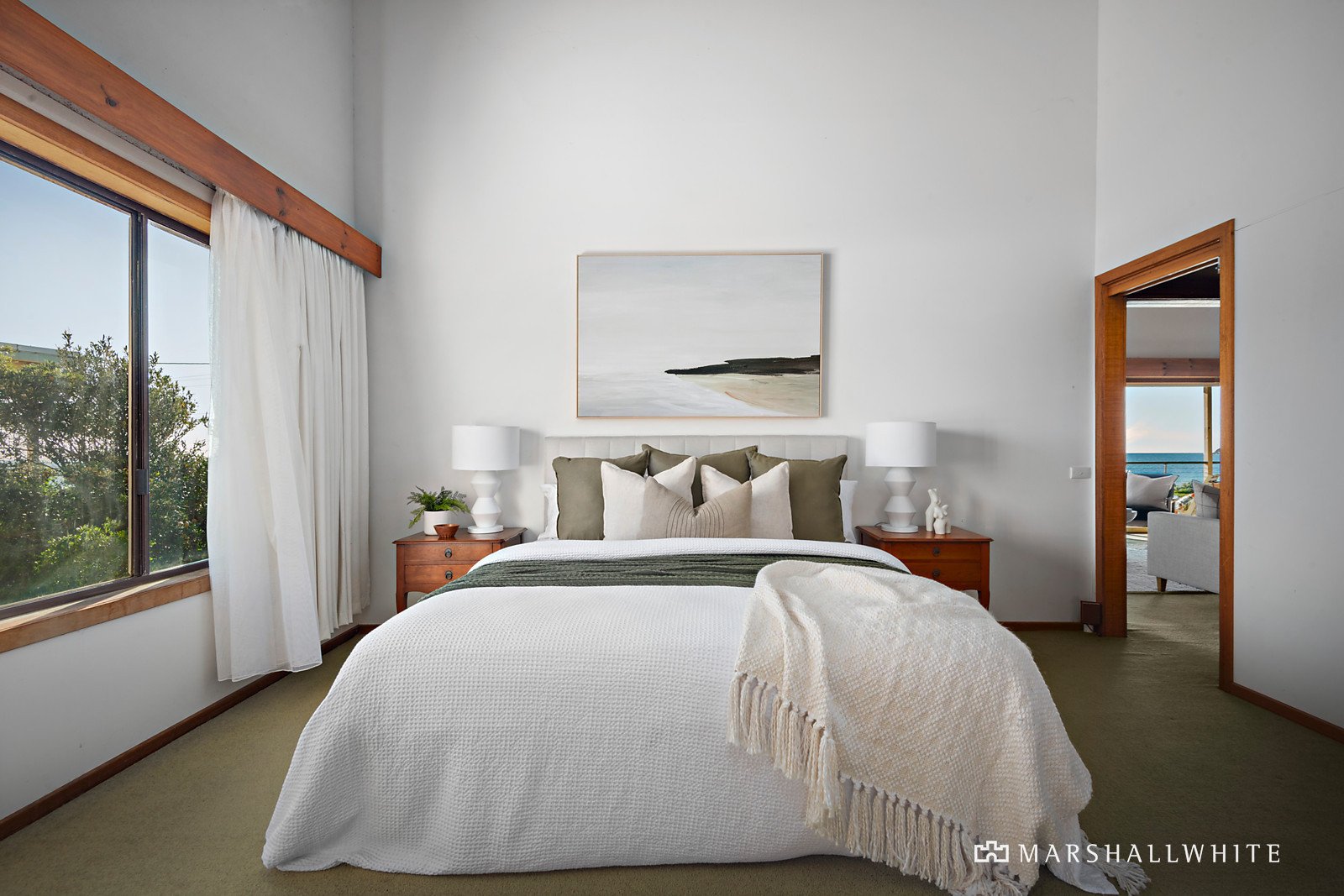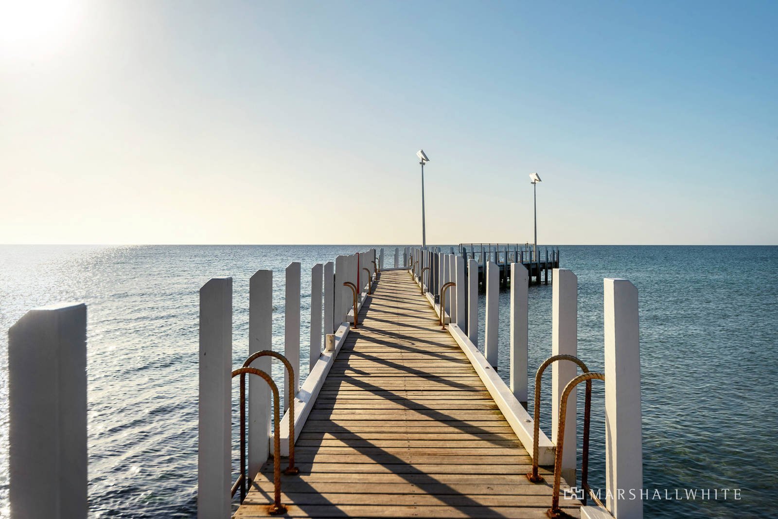 Commanding breathtaking water and coastal views, be captivated by the everchanging seascapes from this landmark Mornington Peninsula residence situated on almost half an acre (1,988sqm approx.) of level, prime land idyllically located directly opposite the turquoise waters, white sands and jetty of Safety Beach.