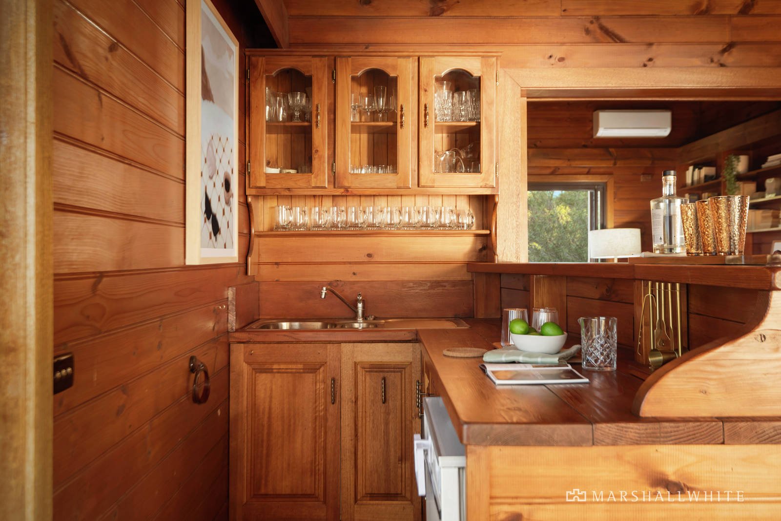 The views from within the majestically proportioned main living area, with soaring exposed beam ceilings, an open fireplace, and built-in wet bar, are just as stunning. Also upstairs is the master suite, sitting room/retreat with rear balcony access, a powder room, and a library/additional sitting room with balcony access.