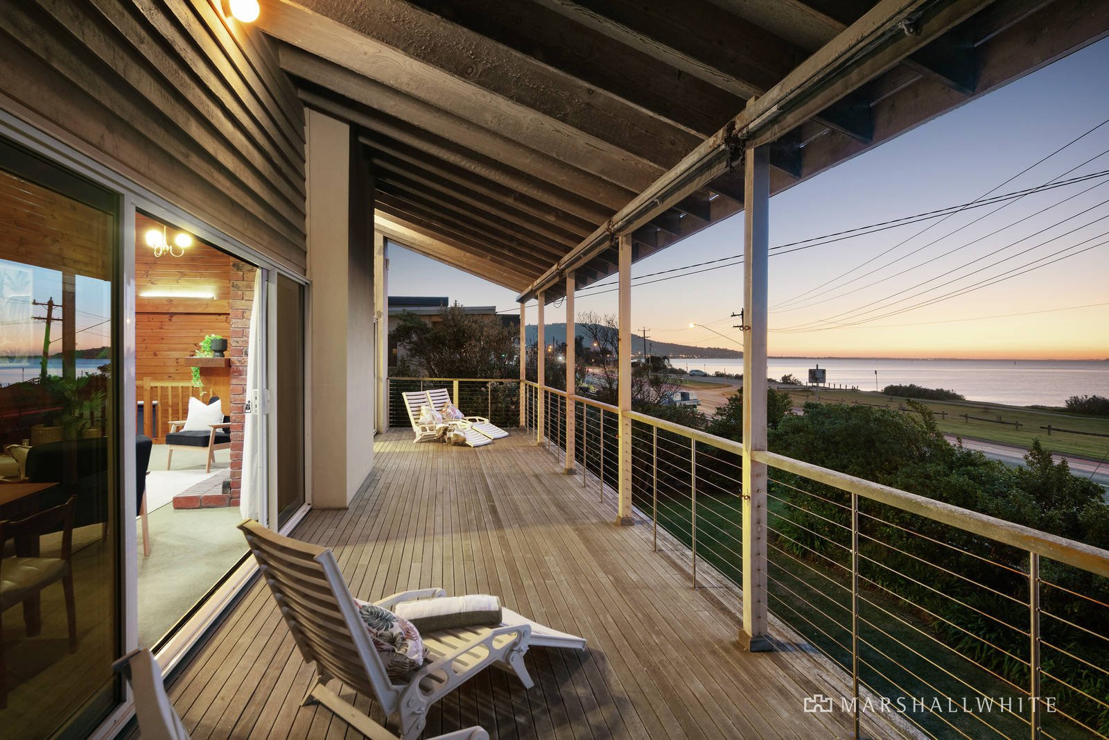 Designed for grand-scale multi-generational family relaxation and leisure by the Bay, the solidly built five-bedroom brick home's upper level is dominated by a wide, wraparound entertainment balcony that overlooks the waters of Port Phillip Bay lapping at the shore just a few metres away. Nestled between the slopes of Mount Martha on one side and Arthur's Seat on the other, the coastal landscape and seascape vistas are truly world-class.