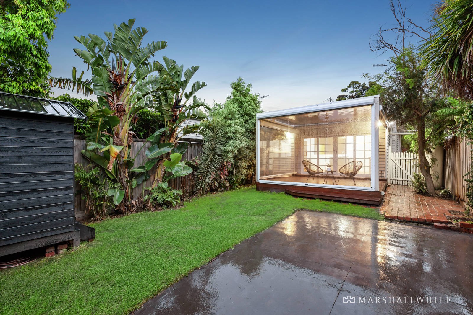 A picket fence and lush front garden sets an instantly appealing introduction to the superb interior of this pretty, recently repainted Edwardian semi-detached cottage c1910. Whilst the addition of a spacious contemporary rear extension as part of previous renovations has delivered marvellous alfresco entertaining spaces to be enjoyed with family or friends. The flexible interior features subtle period attributes including high ceilings with roses and a double arched hallway opening to three bedrooms plus a pristine family bathroom with a concealed laundry. Through to a full-width living room with cosy OFP and generous open-plan dining and well-equipped kitchen area with CaesarStone benches and prestige Miele and Bosch appliances. Opening through sliding doors to a deck with overhead louvres and cafe blinds creating a flowing indoor/outdoor year-round dining and entertaining area; overlooking the private rear garden. Other features of this chic home include ducted heating, R/C air-conditioner (kitchen/dining), garden storage shed, rain water tanks and off-street parking with a large remote roller-door and rear lane access.